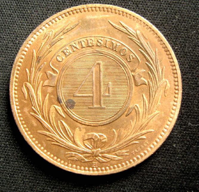 1869乌拉圭4分大铜UNC
