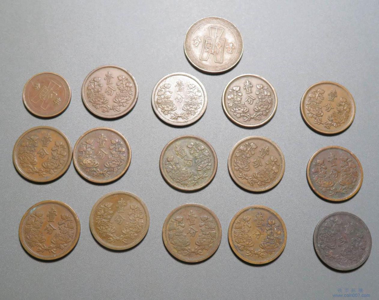 P0352.满洲壹分各年等 共16枚