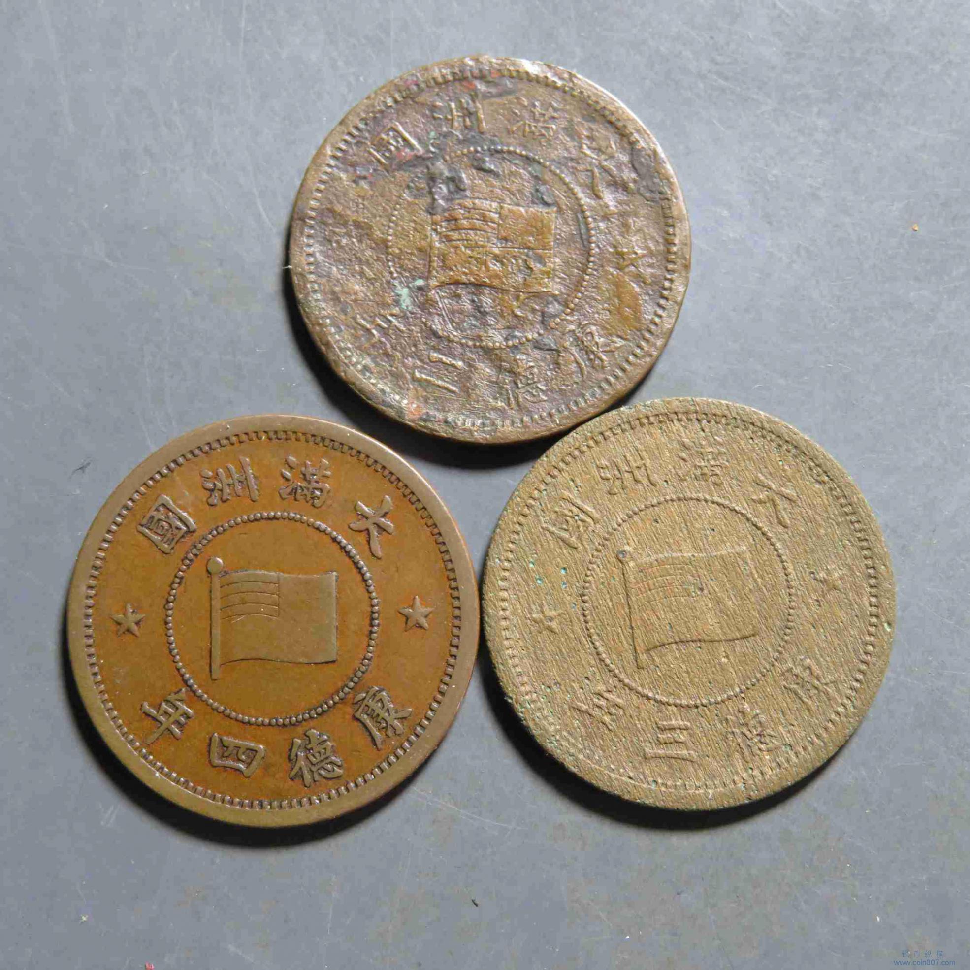 拍品29.满洲壹分3枚 品差