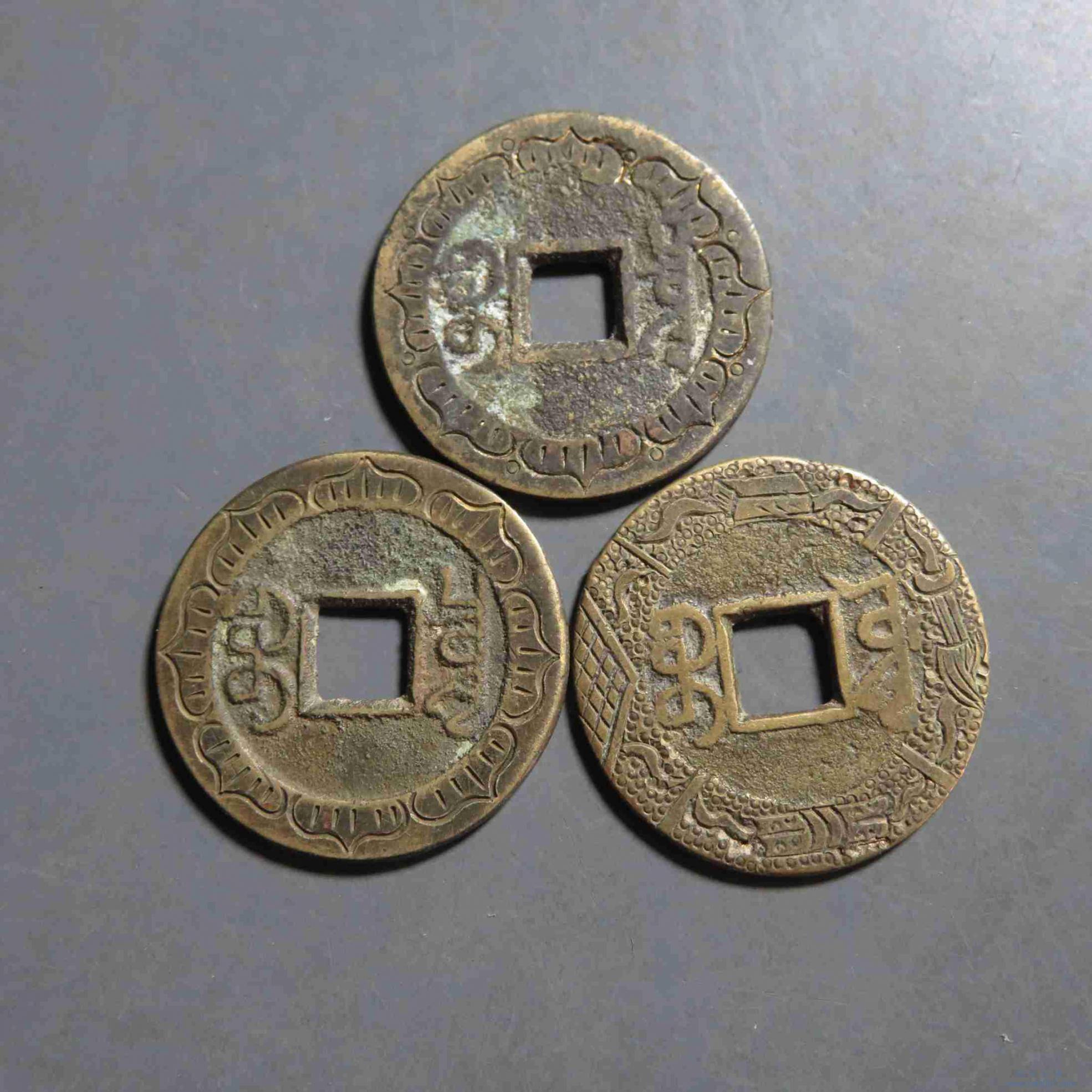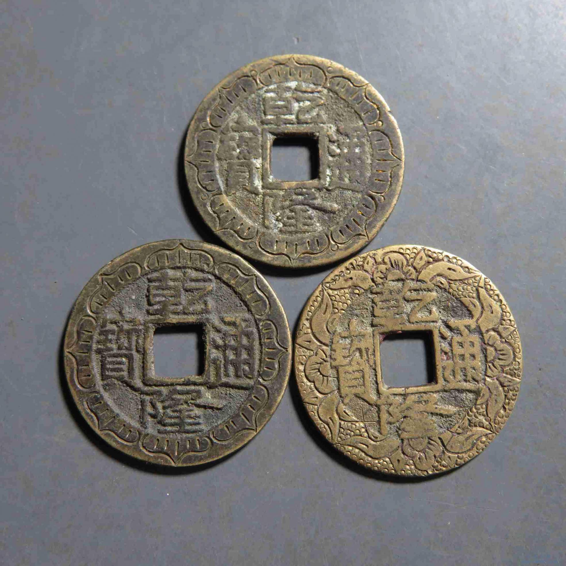 拍品5.乾隆通宝 后刻花3枚
