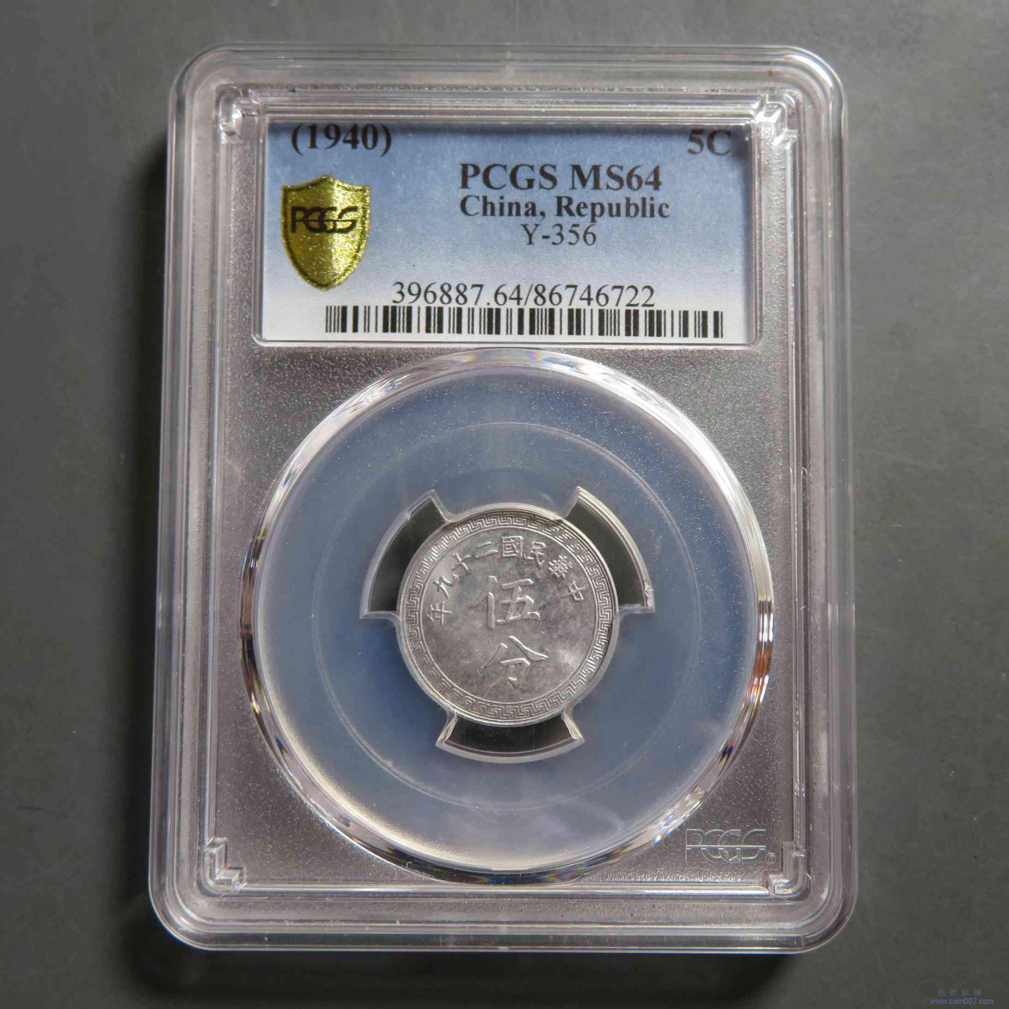 R0135.民国29年铝币伍分 PCGS MS64