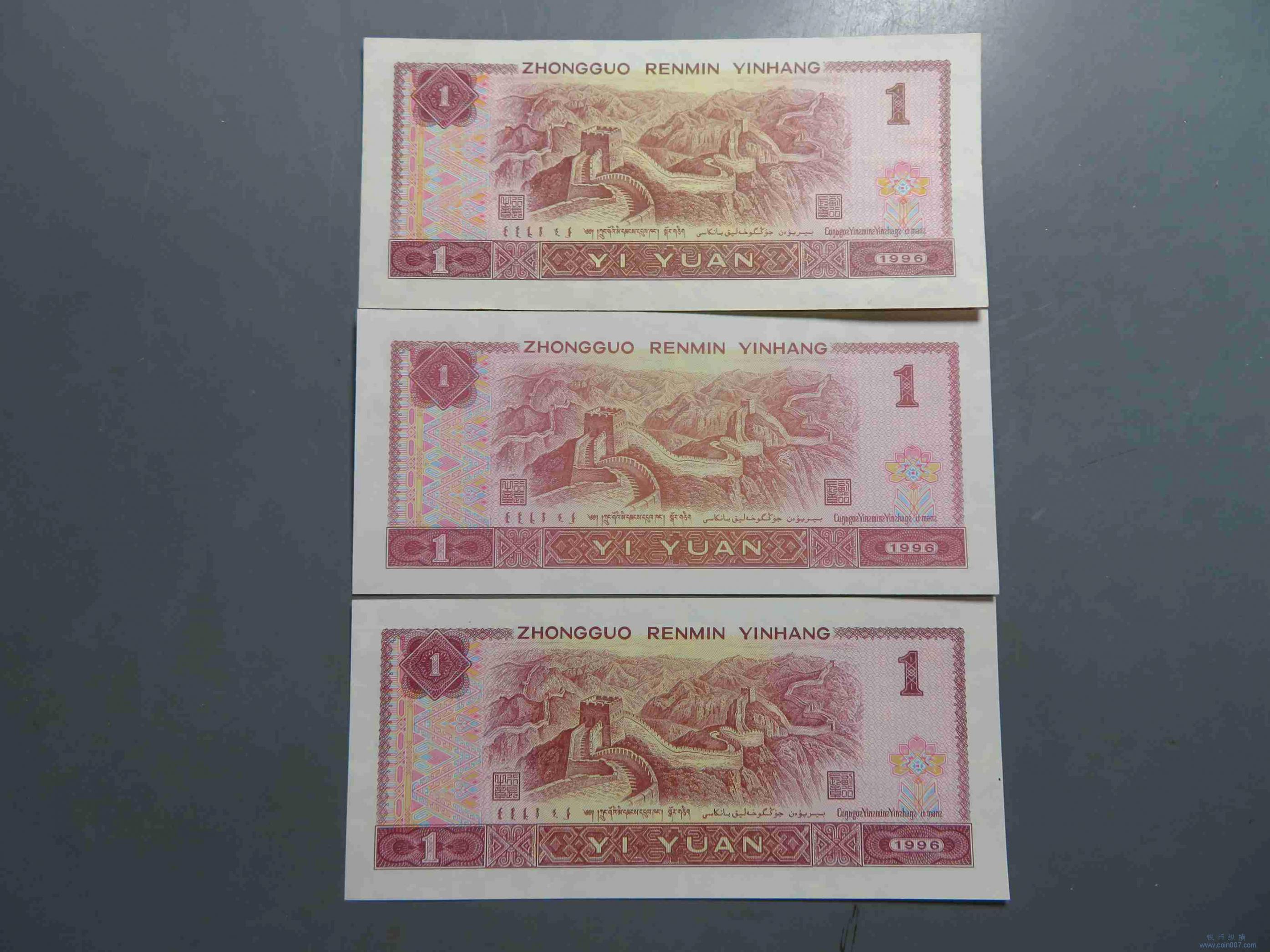 拍品30.四版纸币壹圆 豹子号 3张