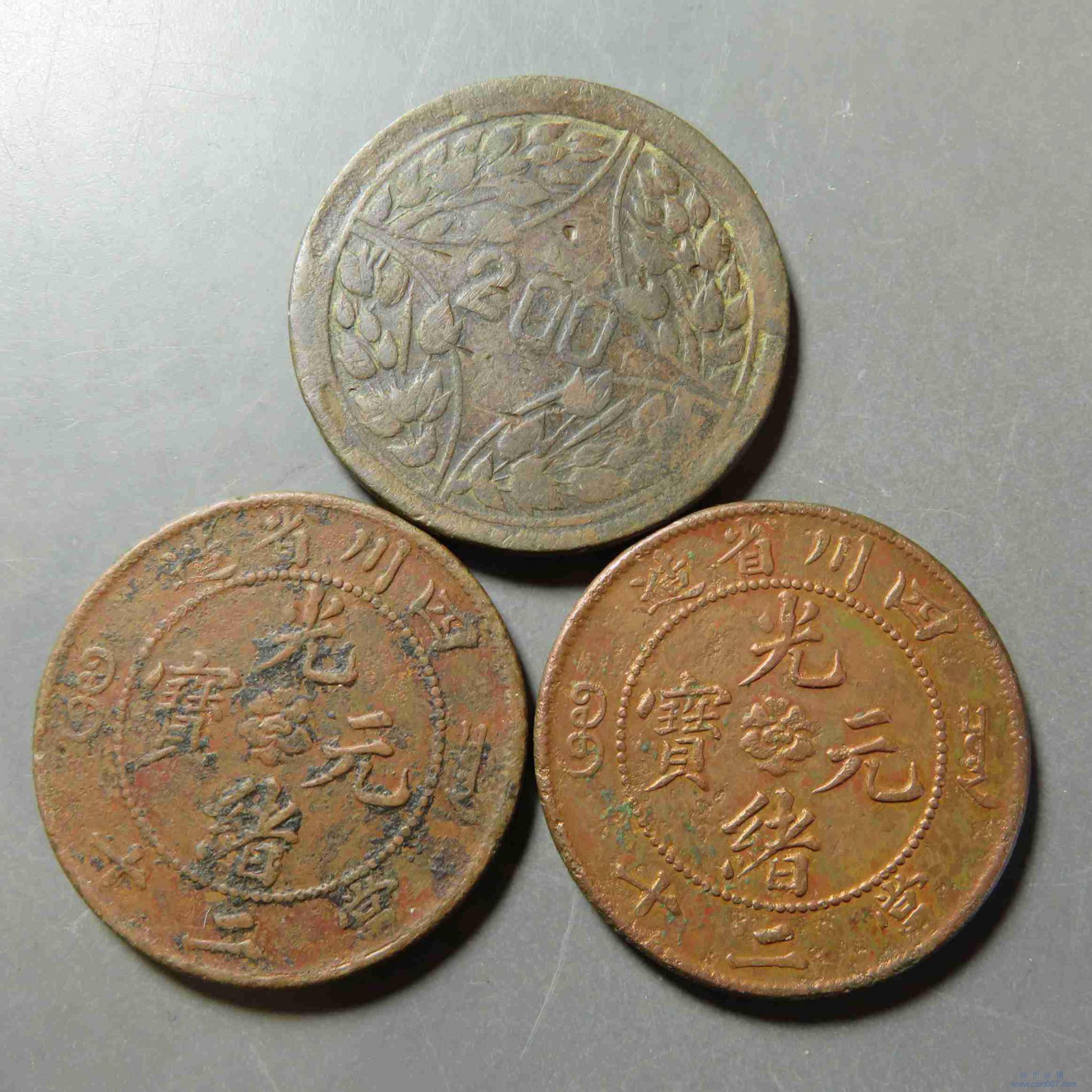 拍品46.四川铜元3枚 当二十文 川花200等 品差自辨不退