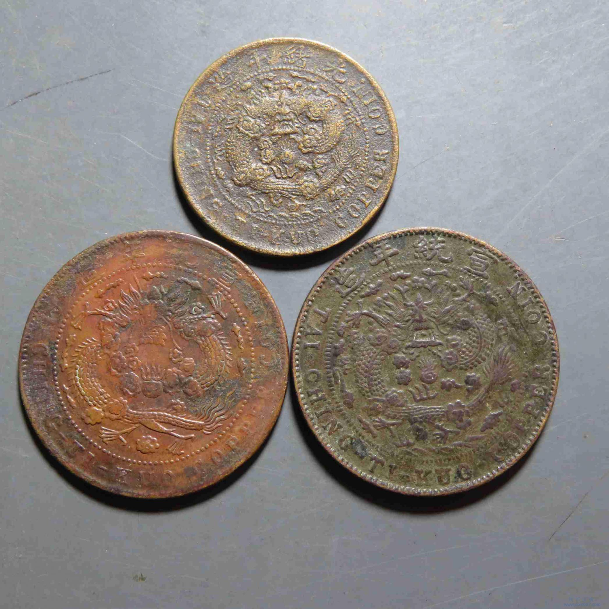 拍品18.已酉二十文鸡爪龙等版别3枚