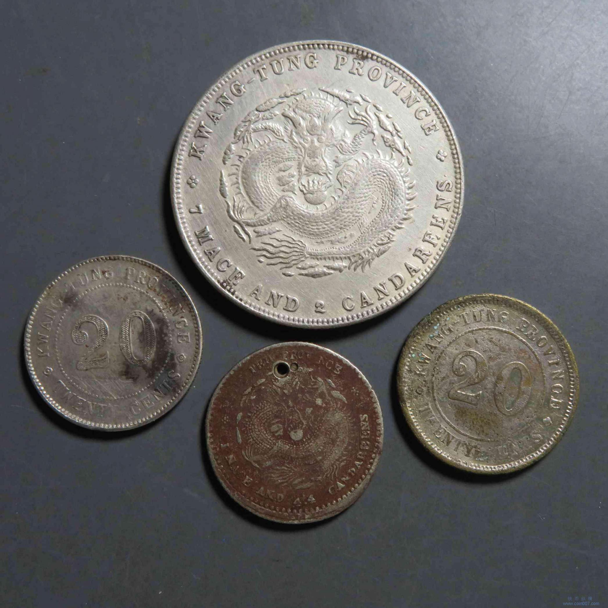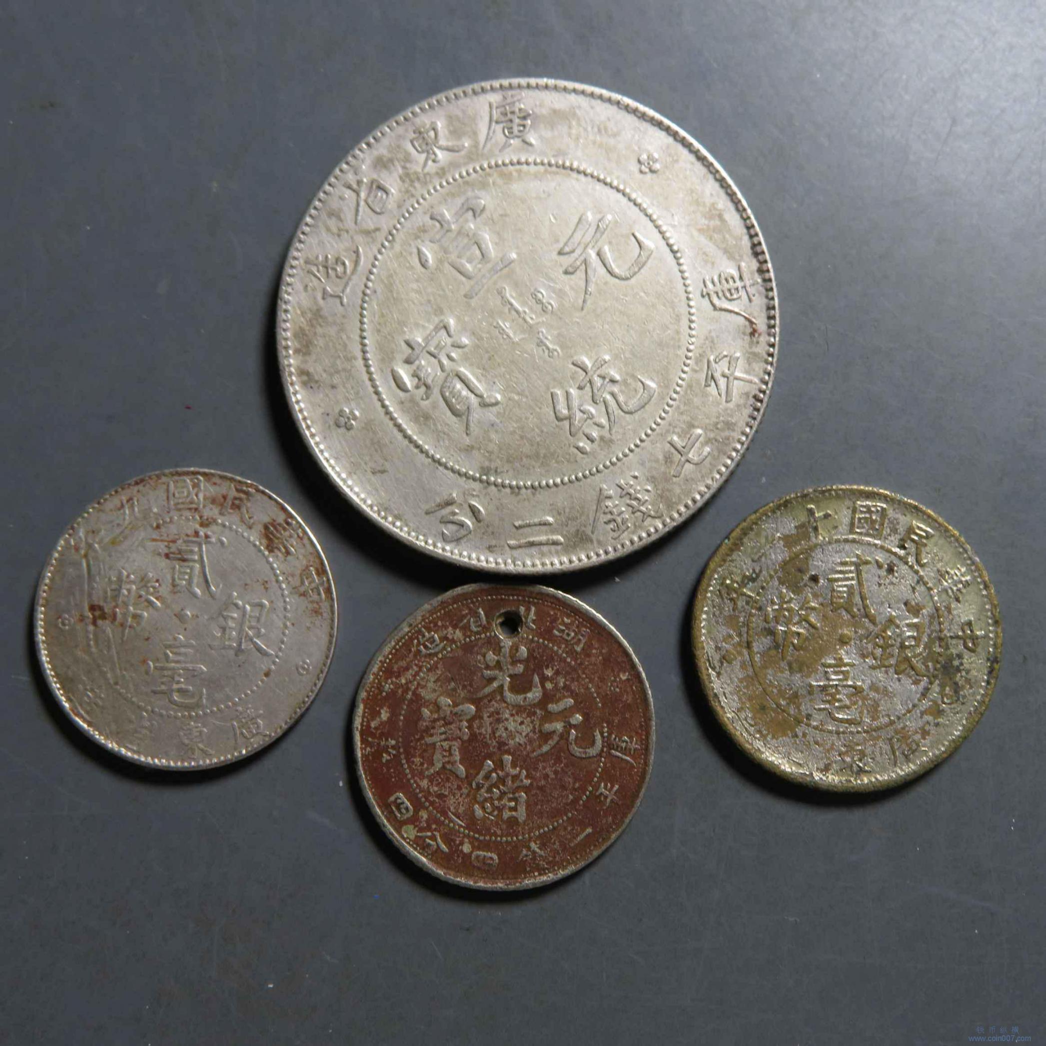| R1057.广东宣统0.72(真银假币)老私版等4枚 不退 |