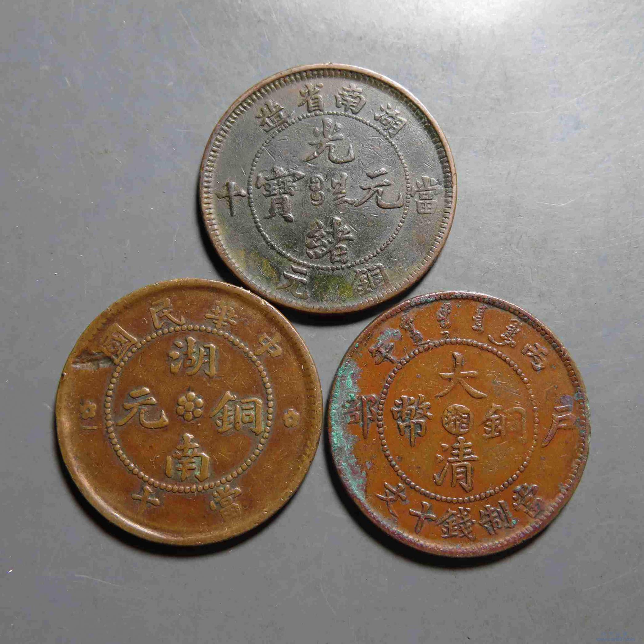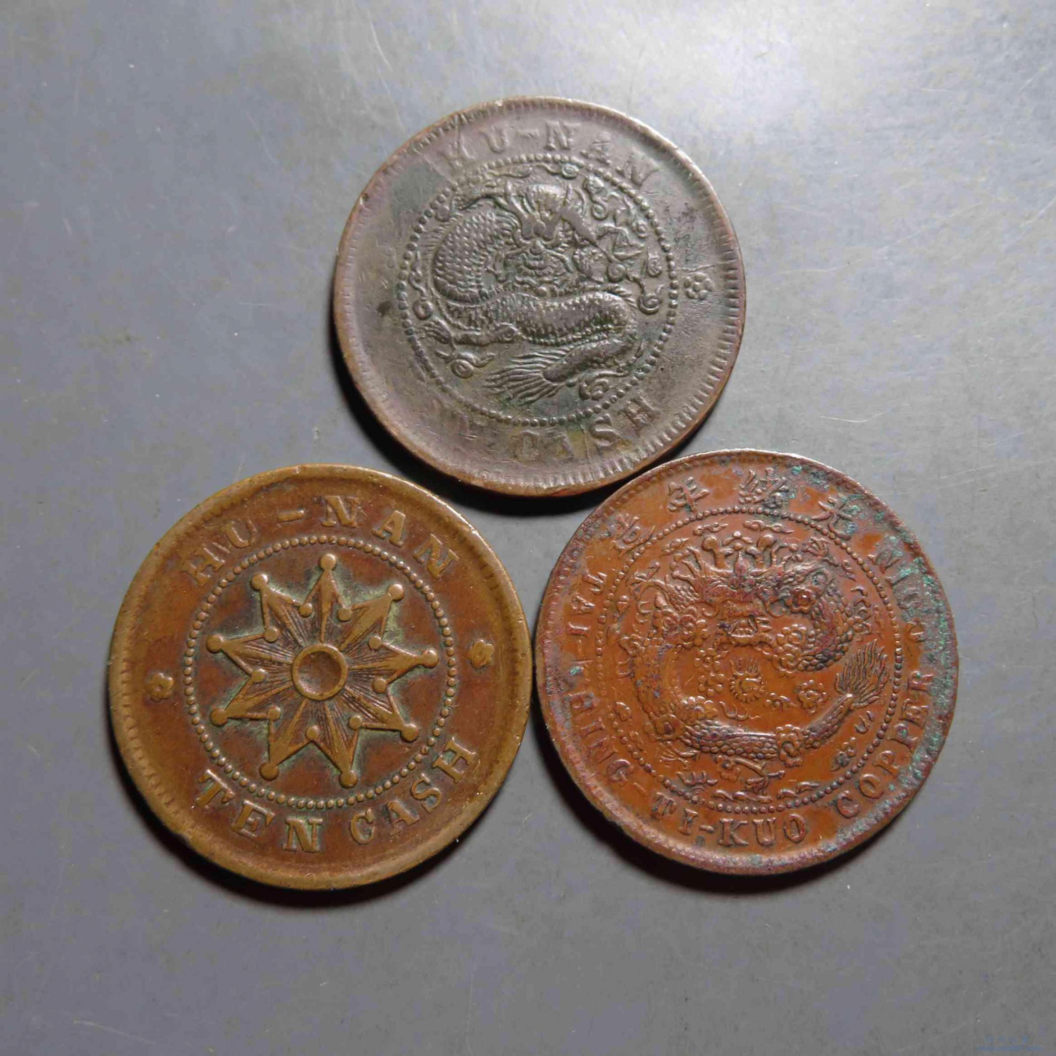 拍品47.湖南十文版别铜元3枚 小花空心等