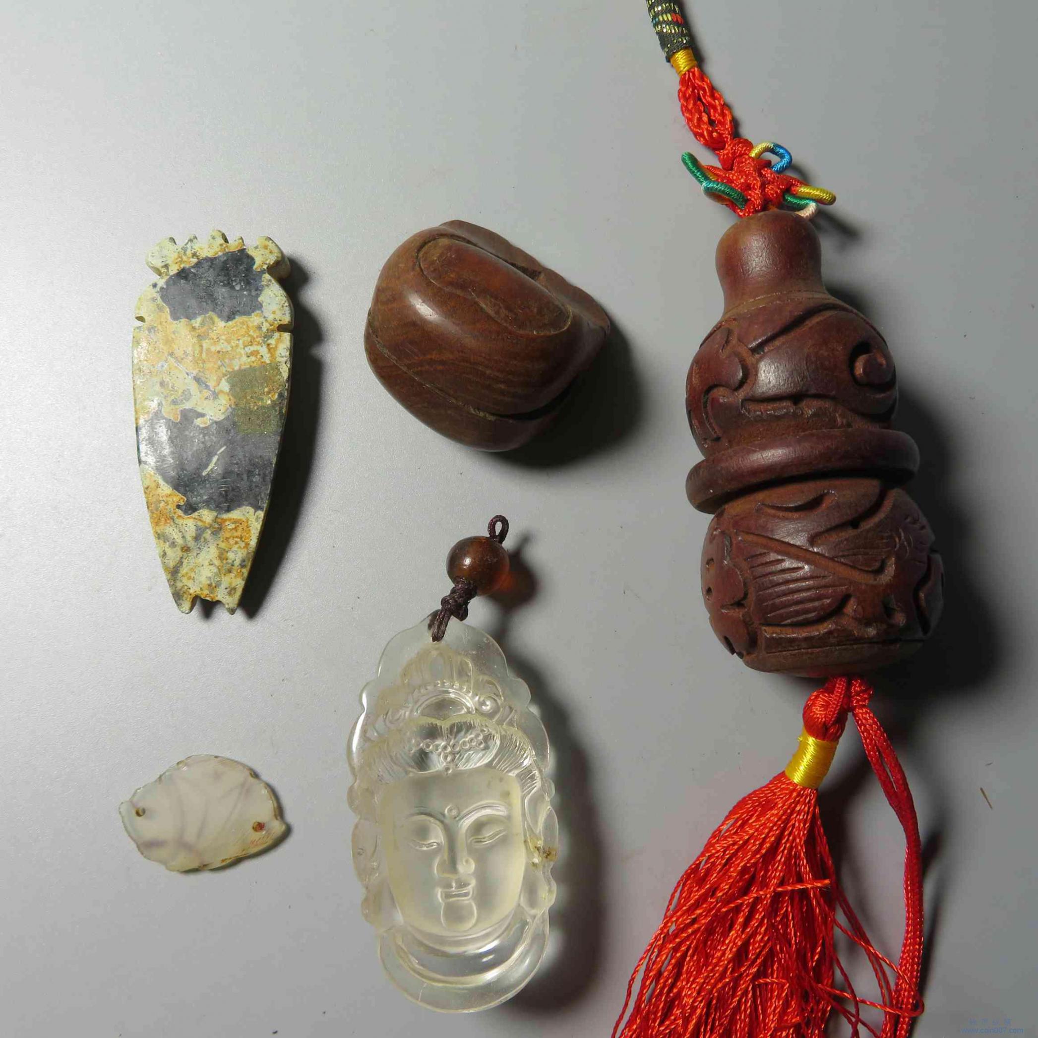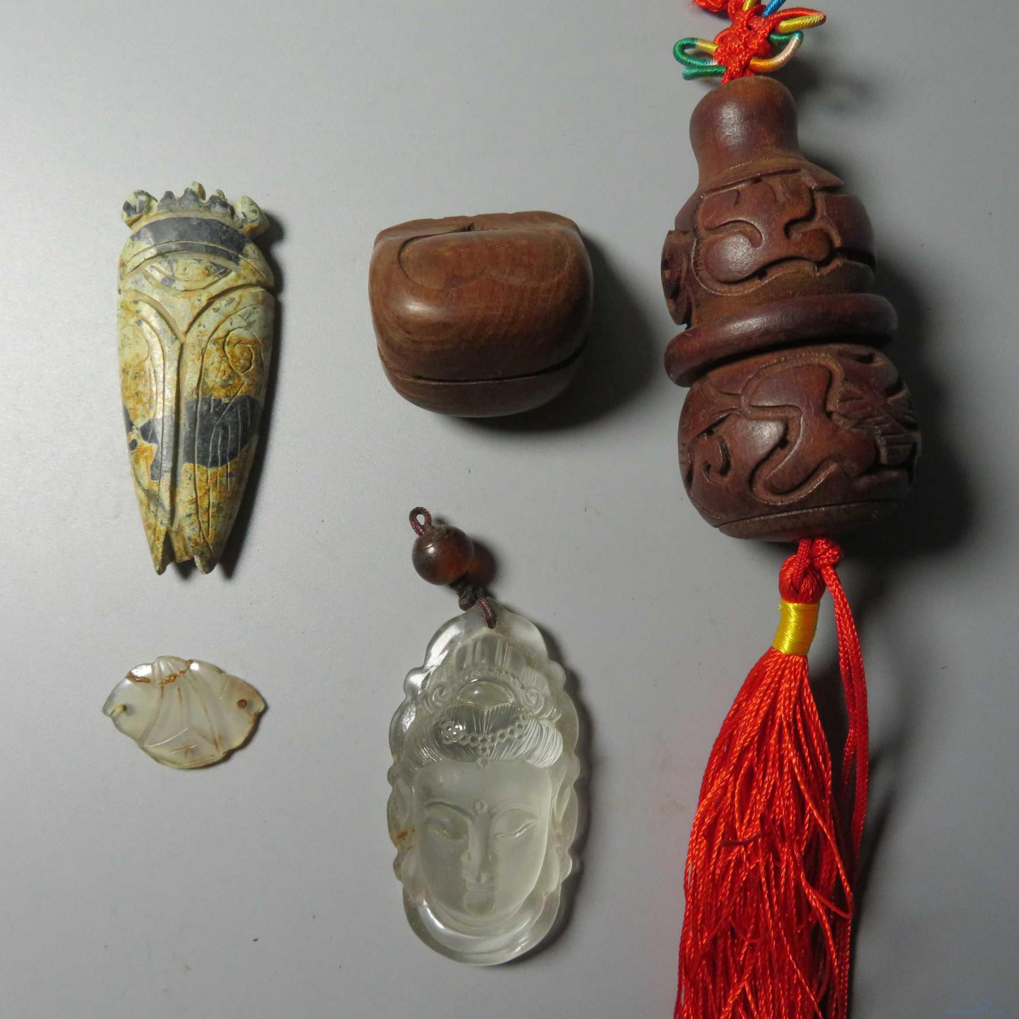 拍品11.杂项 木鱼 挂件 玉蝉等5件 不退