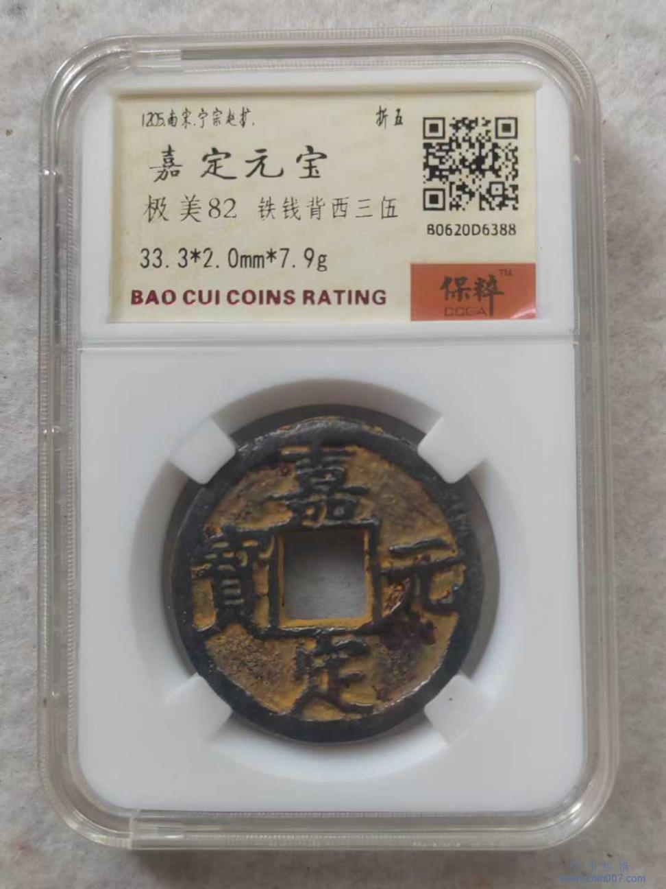 极美品 嘉定元宝 背四三伍