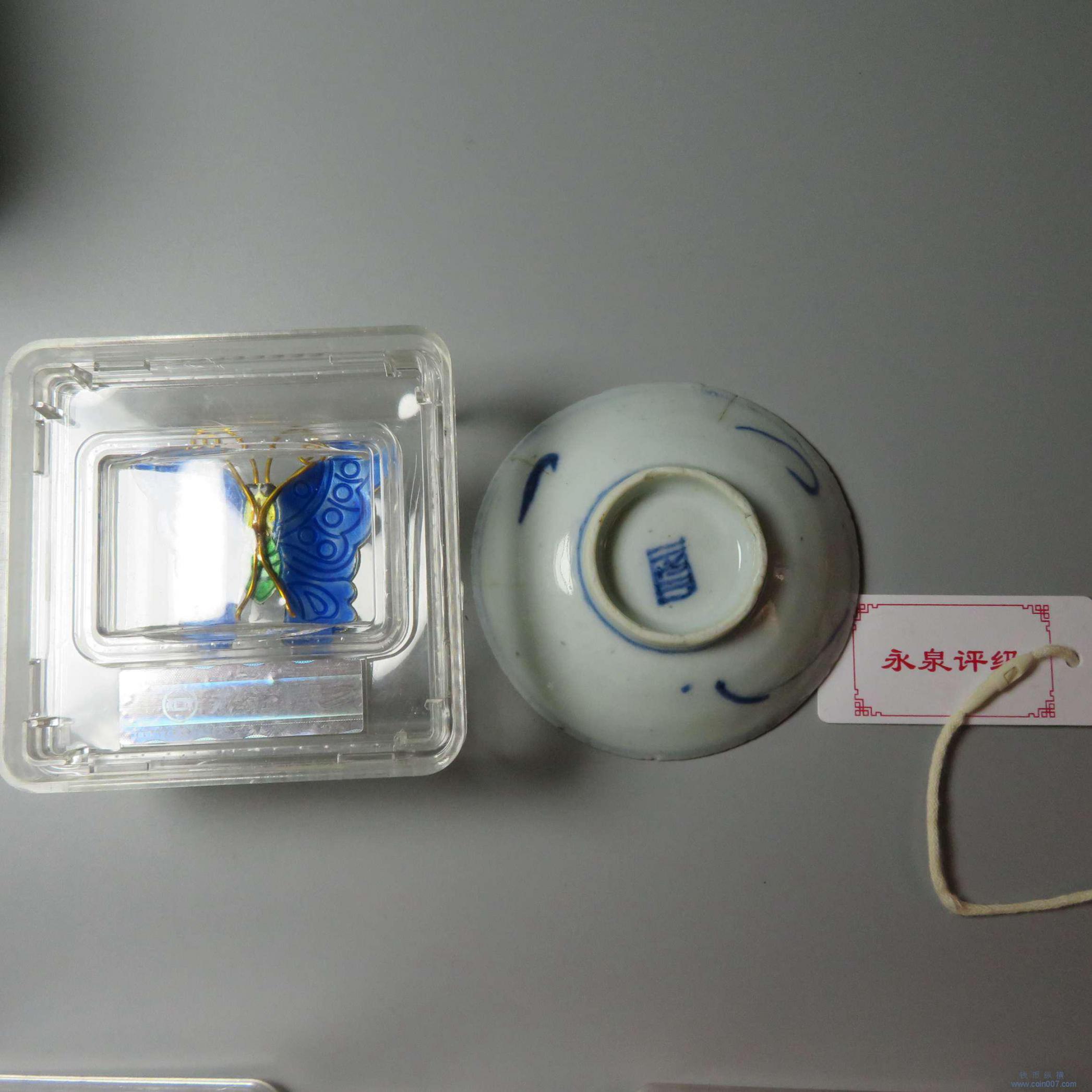 拍品5.评级各类杂项 青花瓷盘 景泰蓝 银帽花灯 5件不退