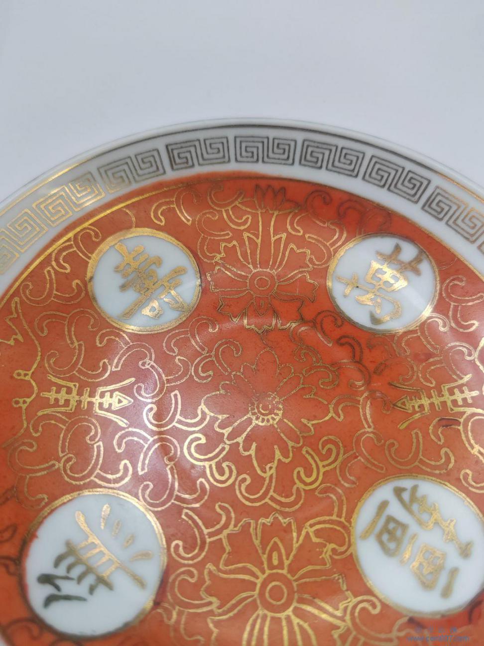 567瓷 矾红描金万寿无疆碟