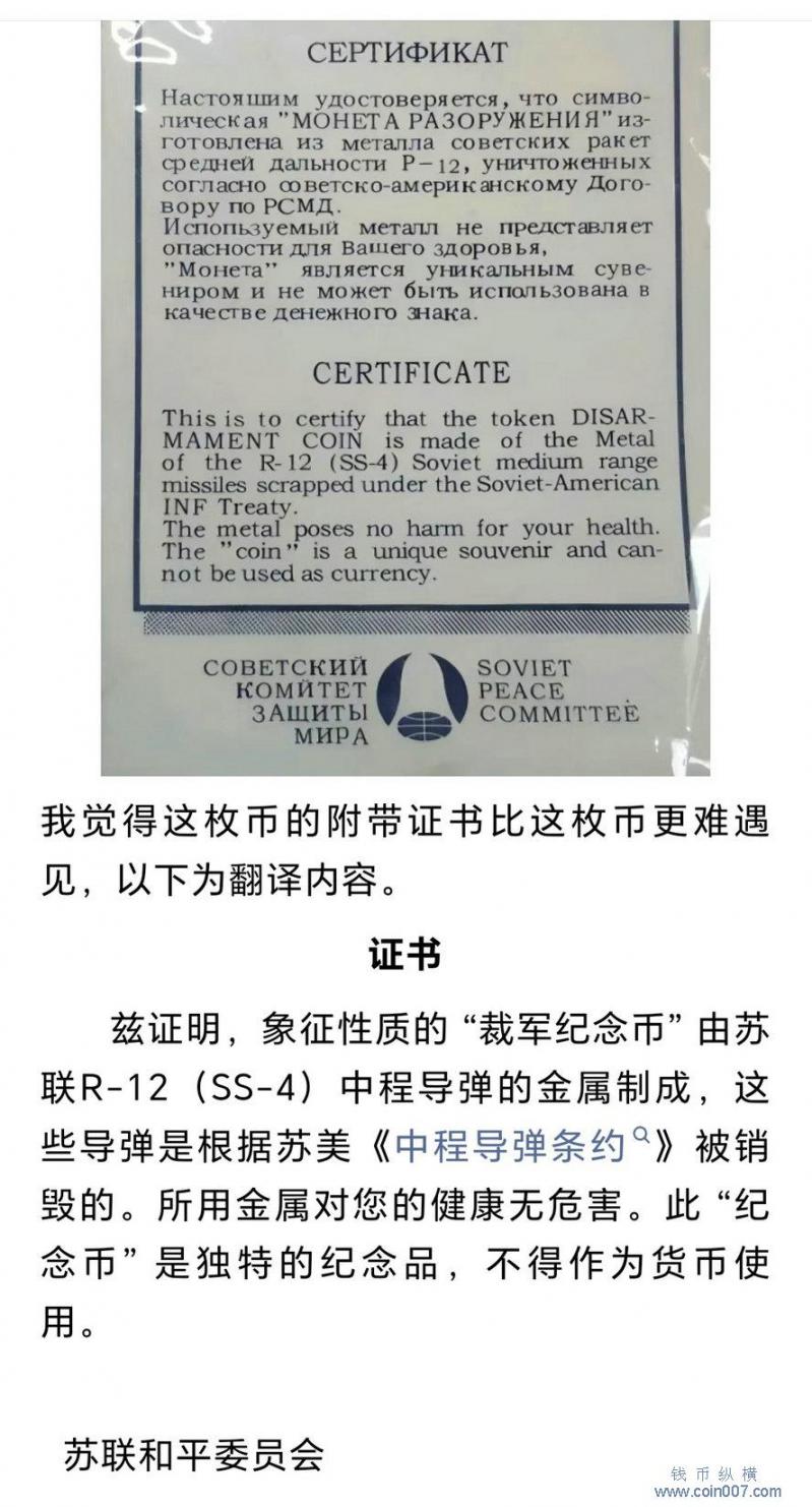 中程导弹材料纪念币