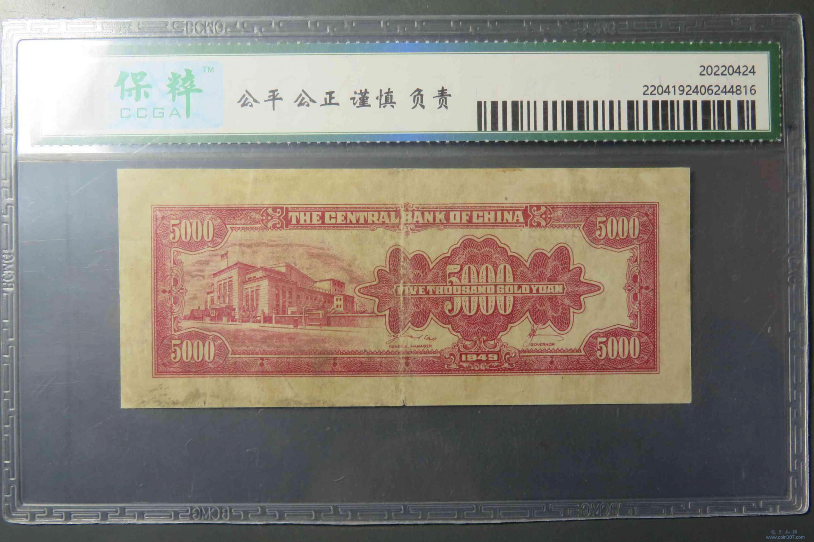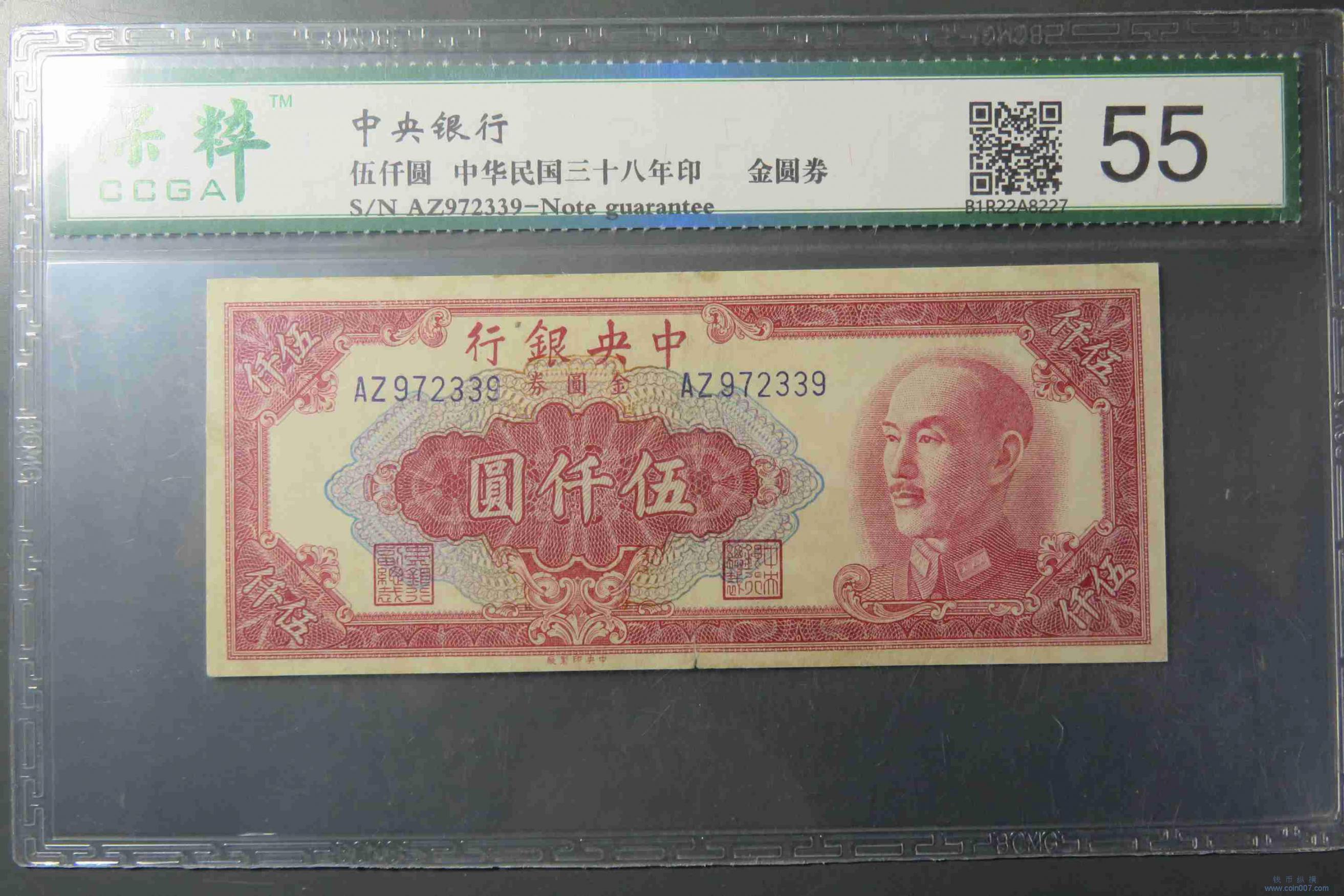 W0112.中央银行金圆券 伍仟元 评级55