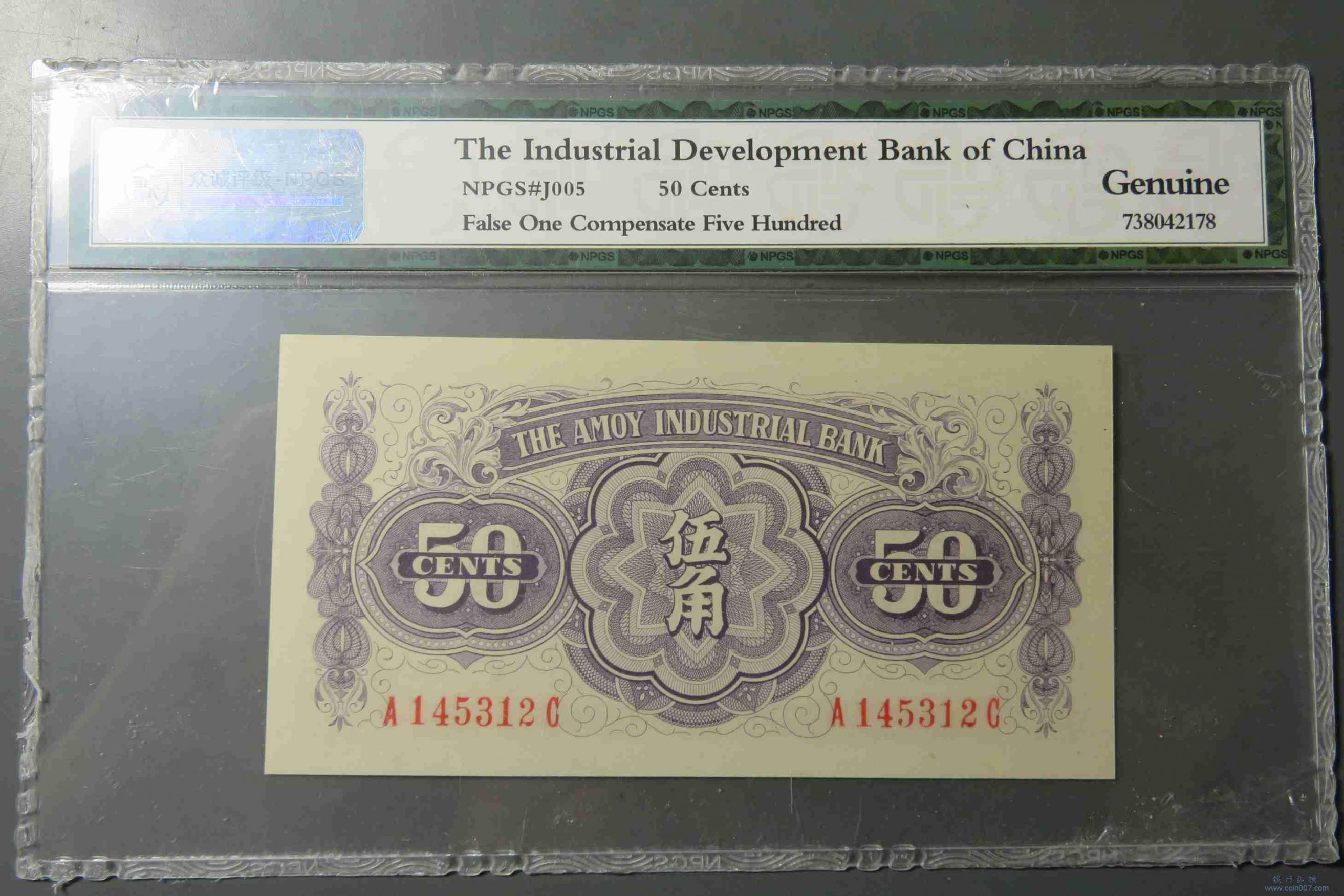 W0121.厦门劝业银行五角 评级币
