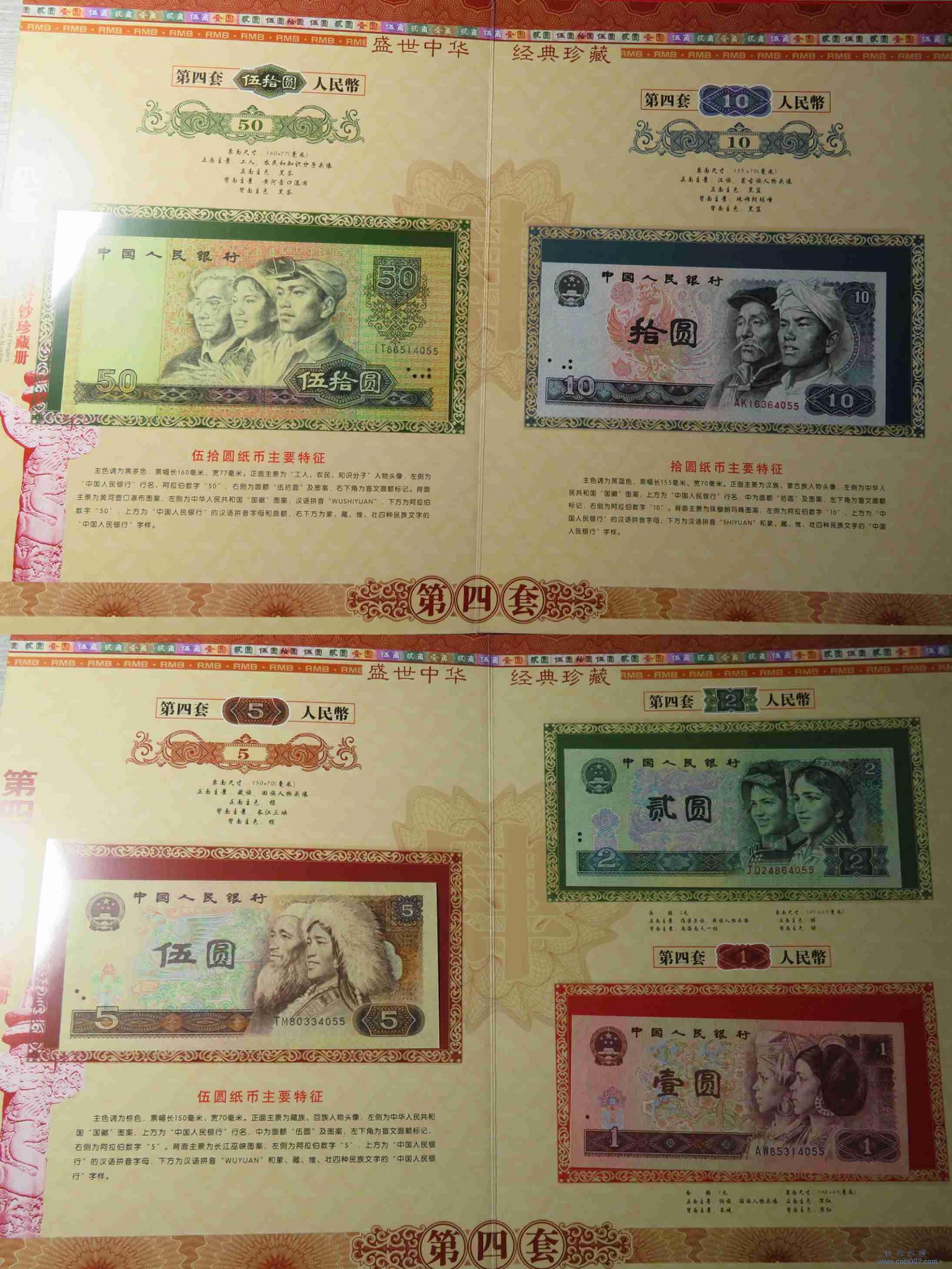 W0159.四版纸币同号钞纪念册 (尾4同4055 部分流通品)