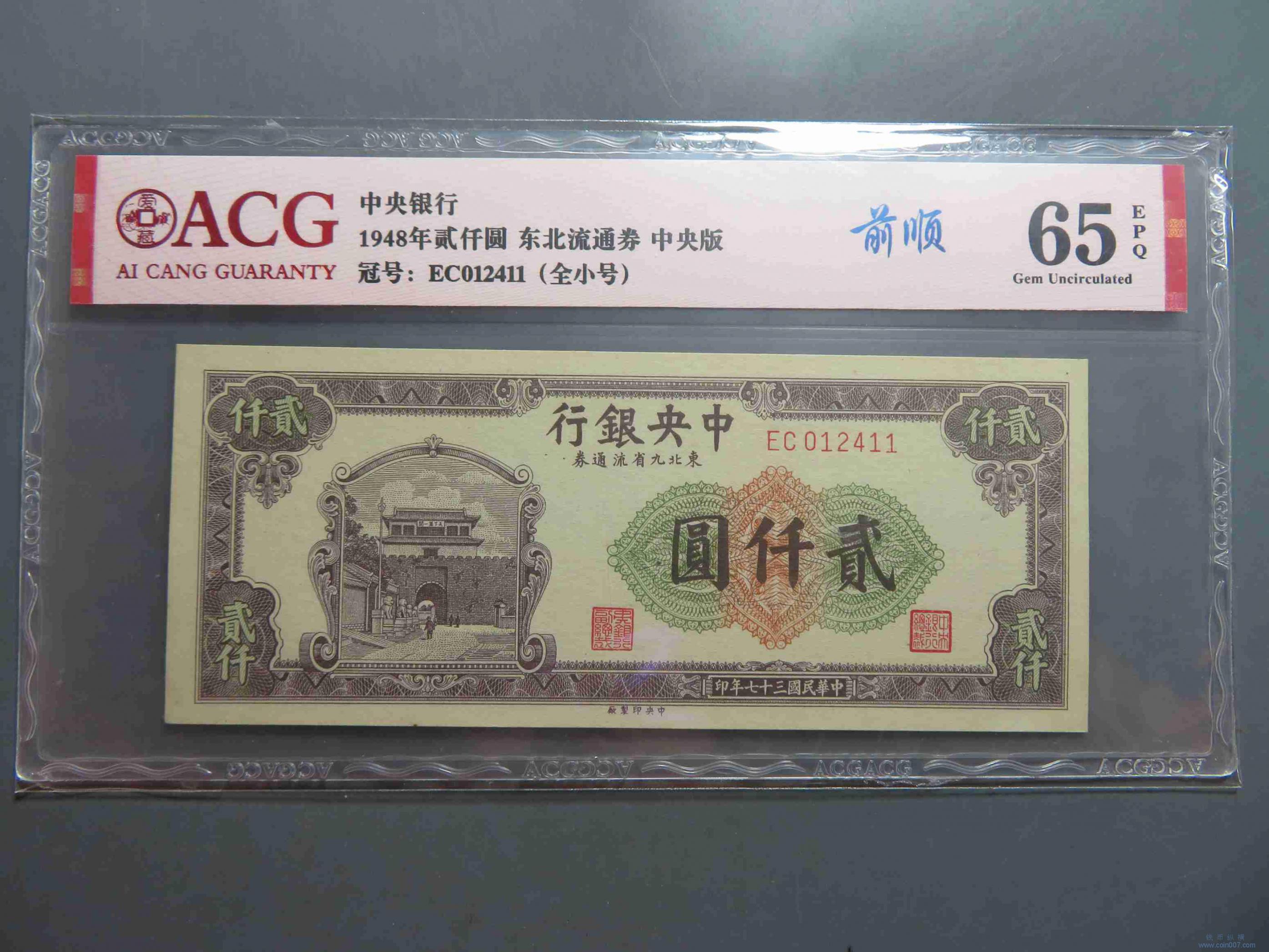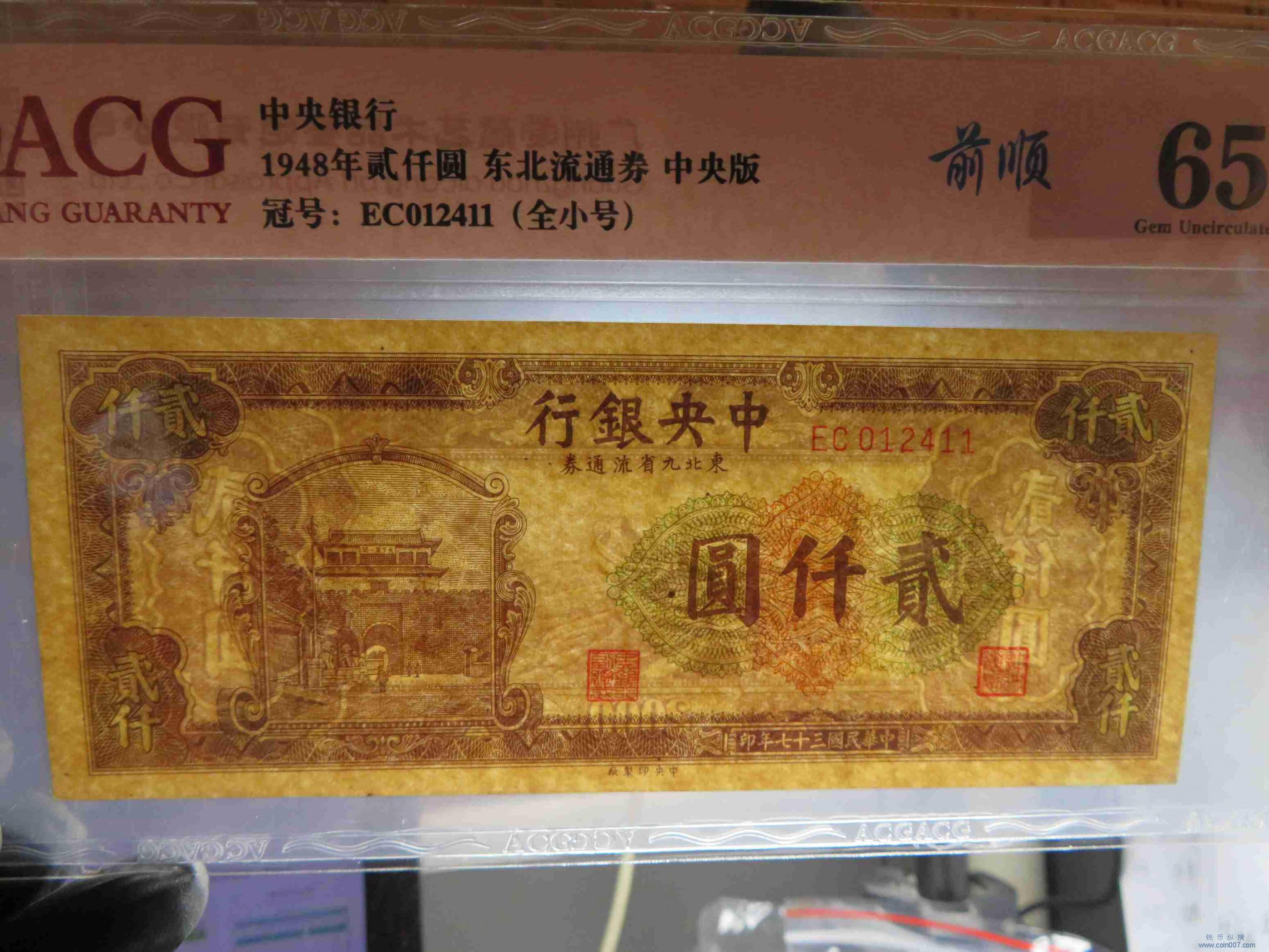 W0244.中央银行东北九省流通券贰仟圆 EPQ65