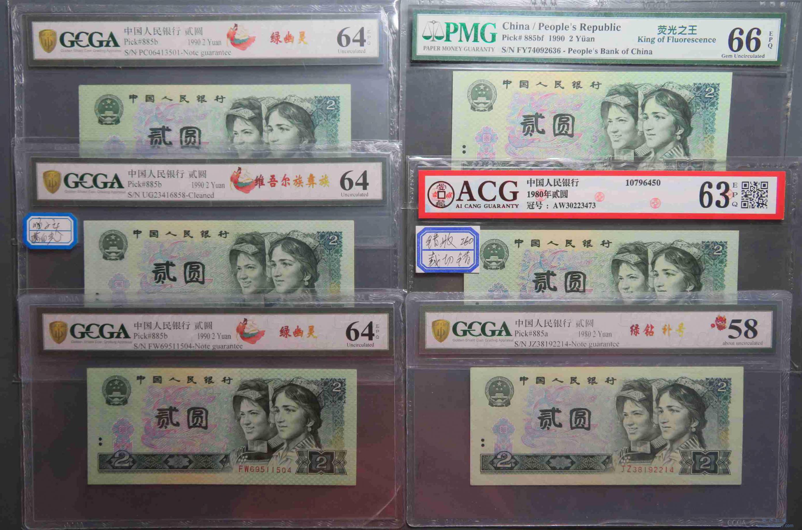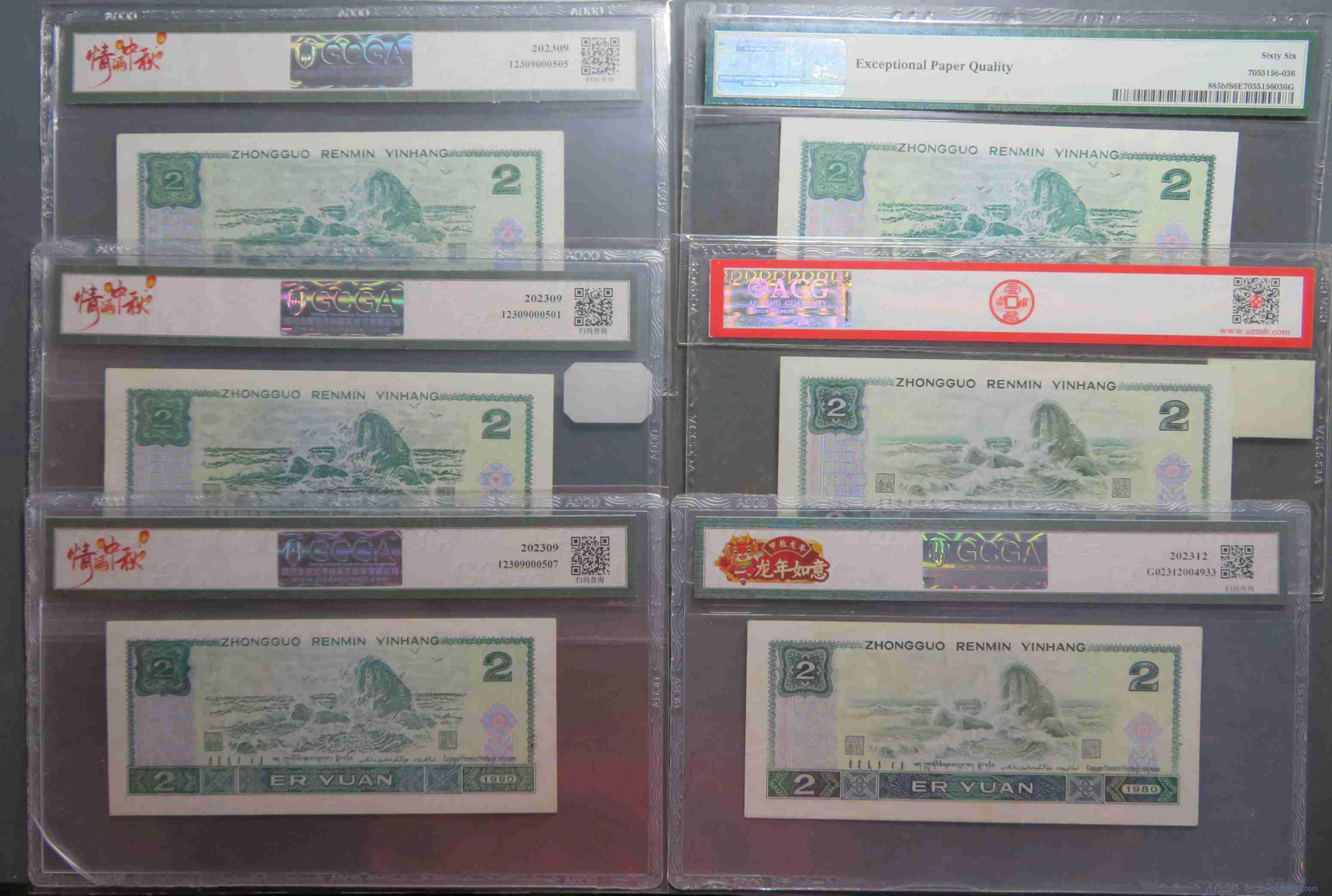 W0323.四班纸币贰圆80/90 6枚 评级币