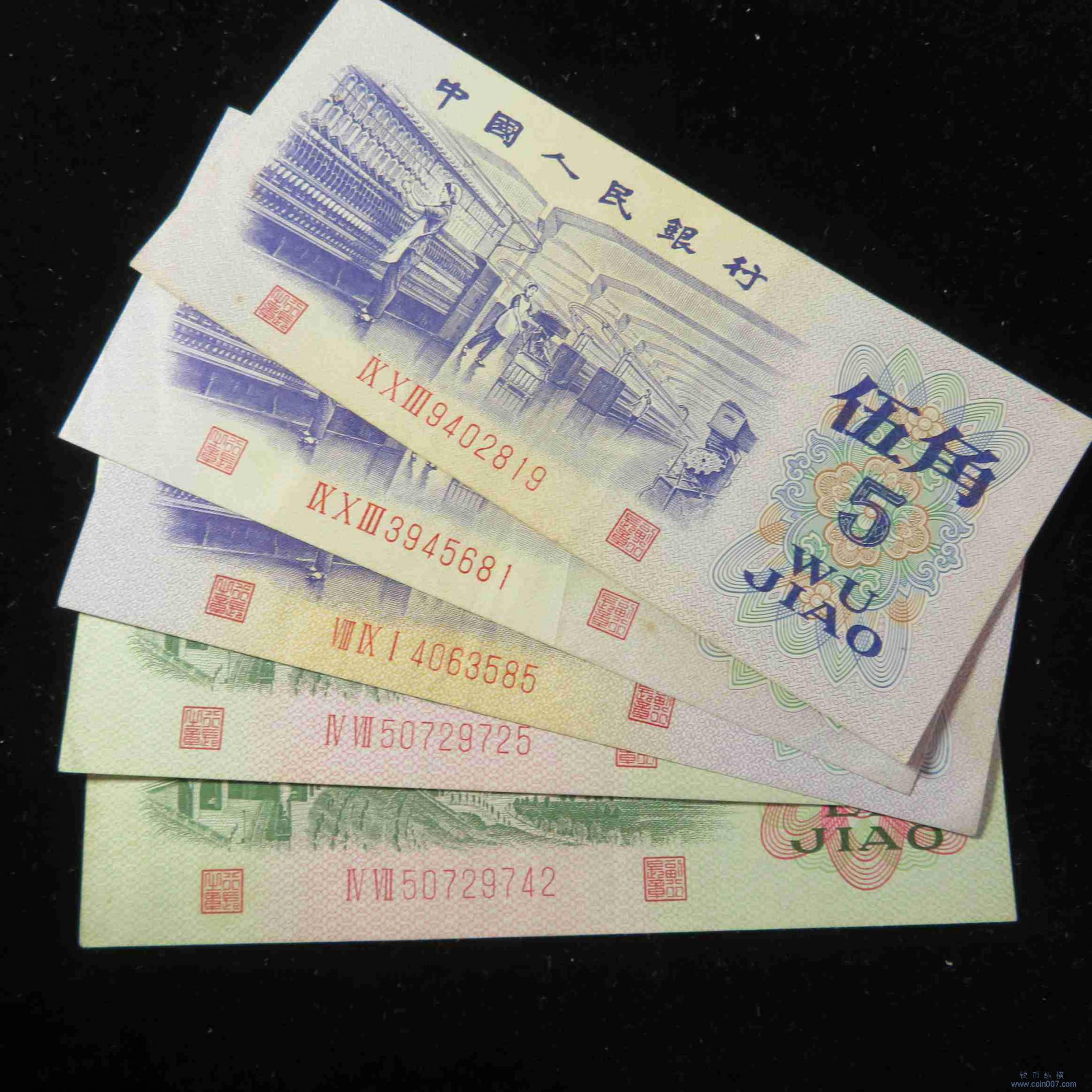 W0394.三版纸币五角贰角 共5枚