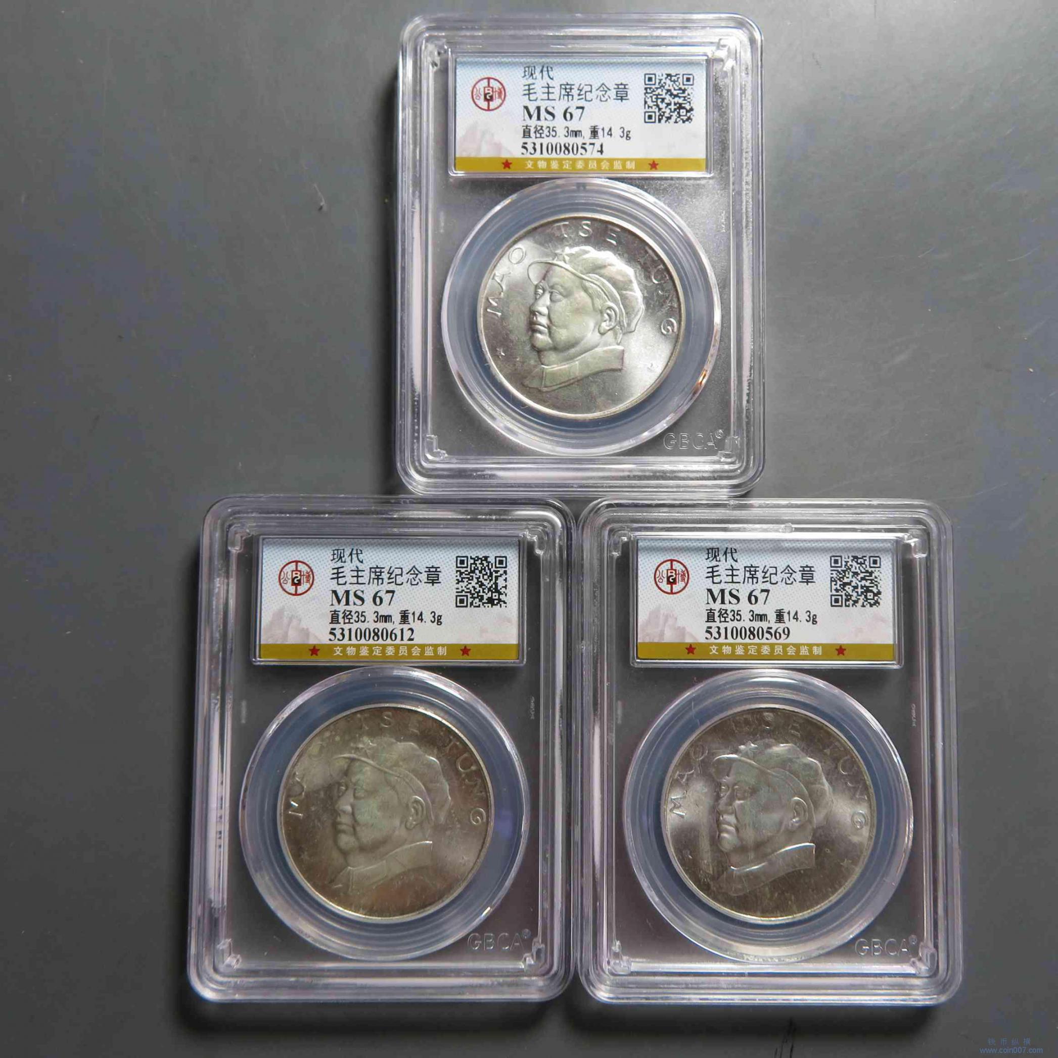 W0443.毛主席纪念章3枚 MS67