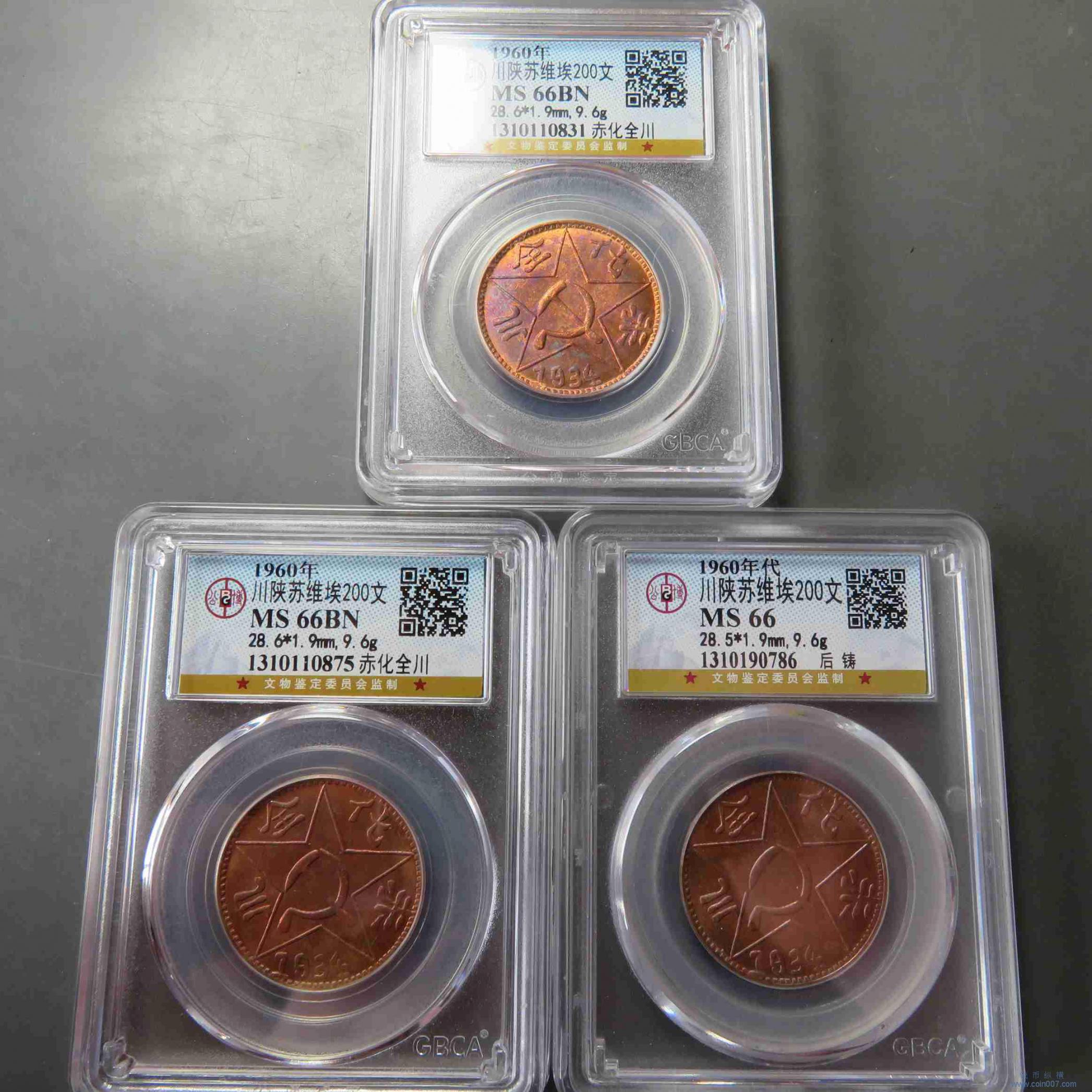 W0495.后铸川陕苏维埃200文 MS66 共3枚