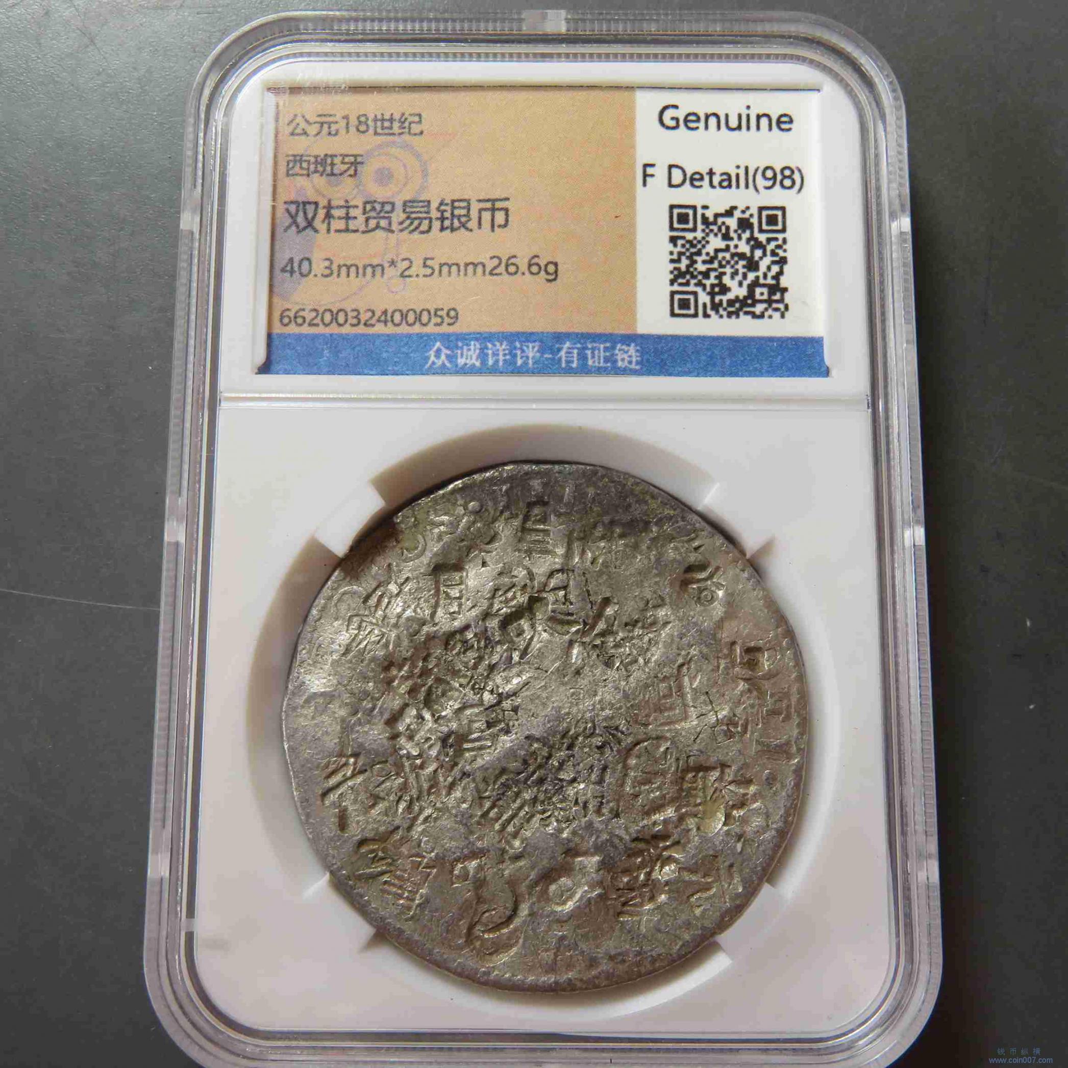W0503.西班牙双柱银币 评级F