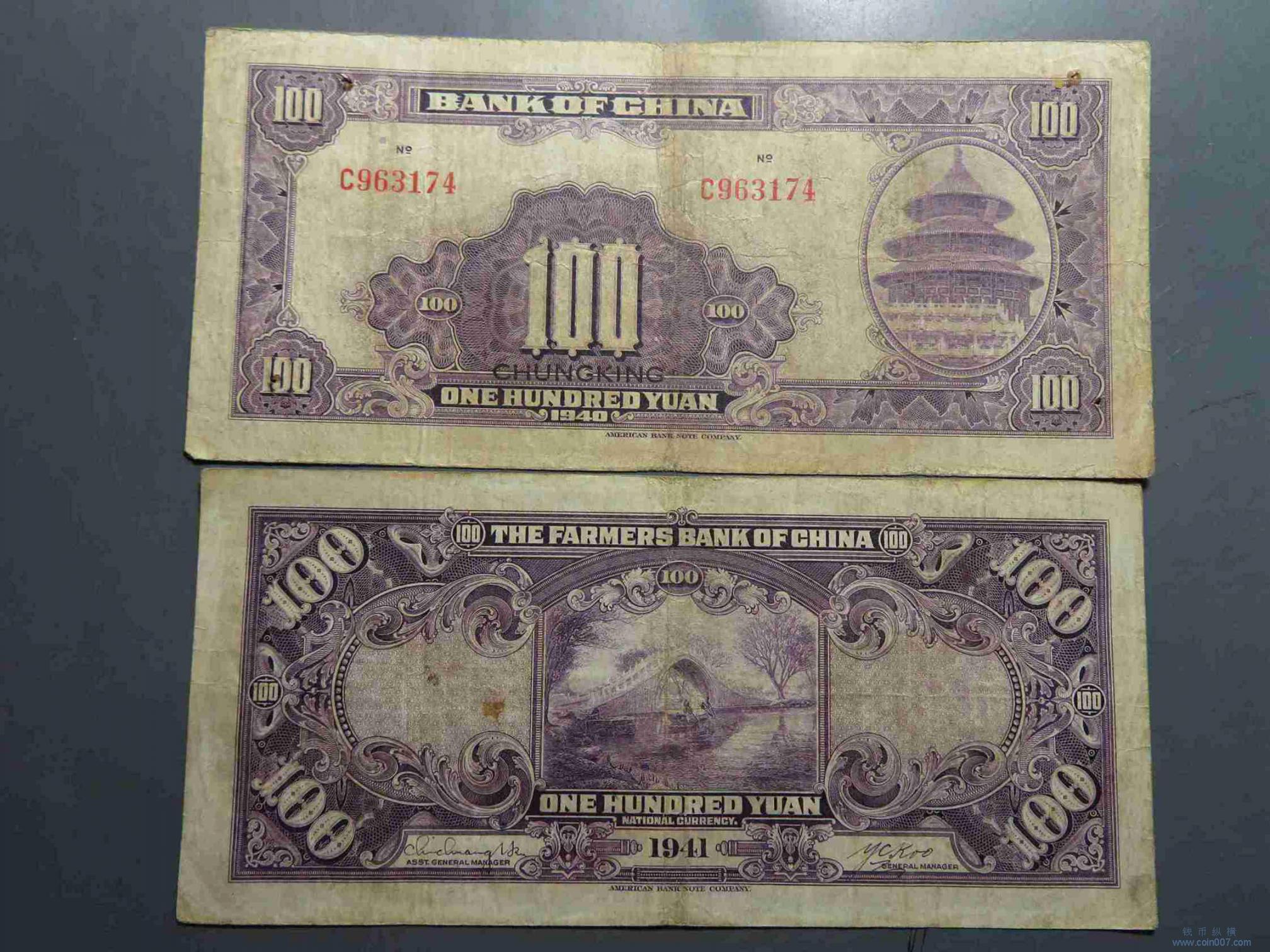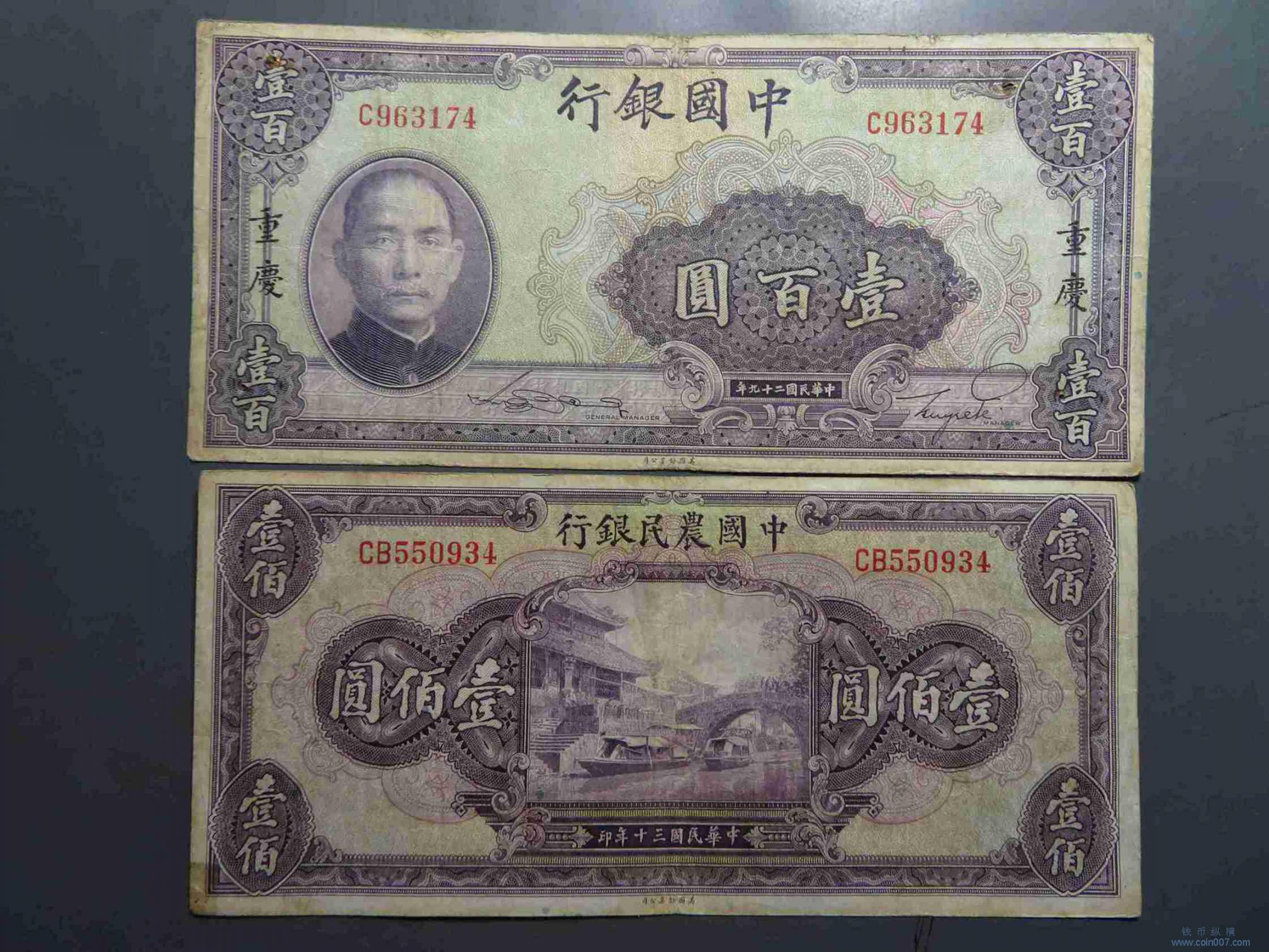 W0555.中国银行、中国农民银行壹佰元共2张