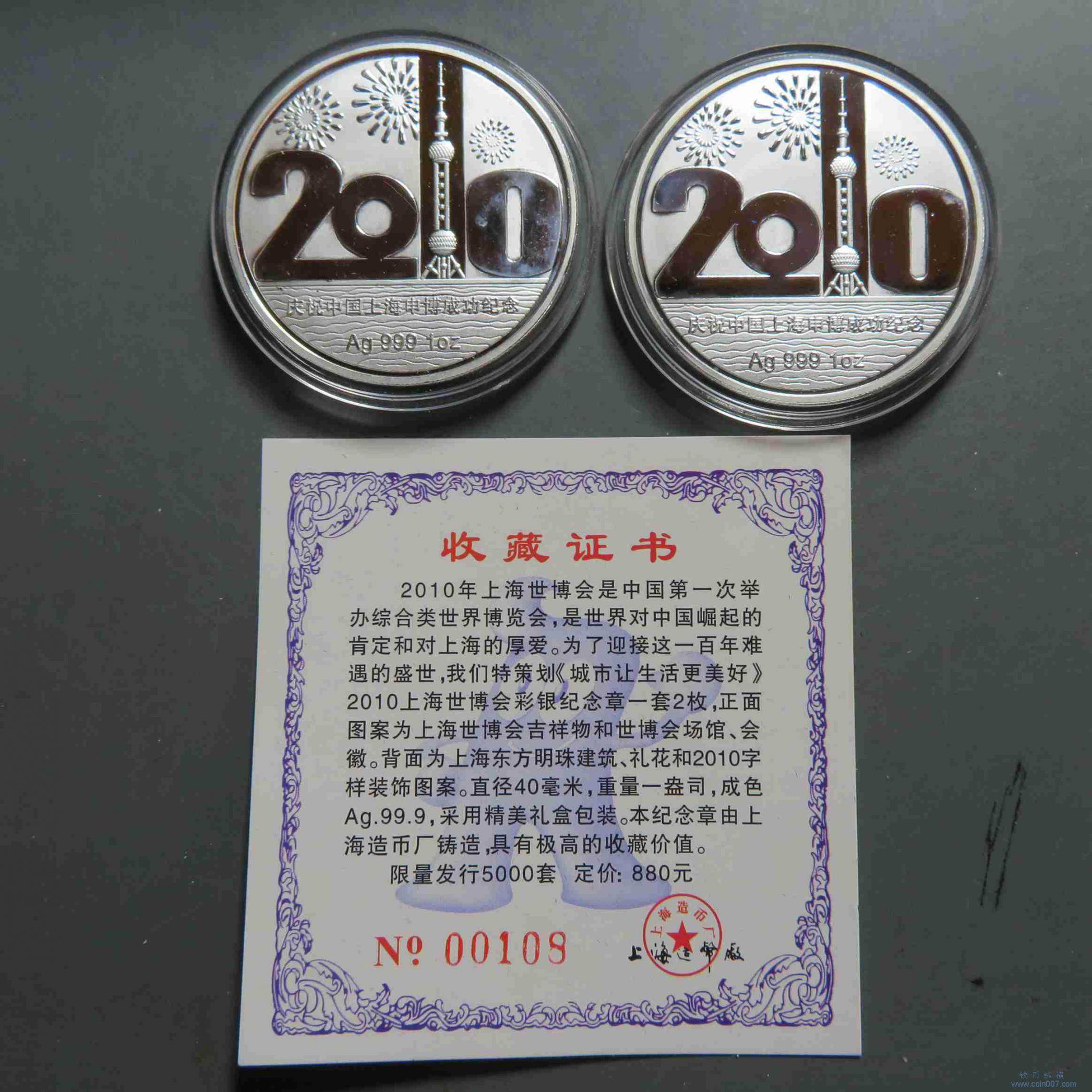 W0644.2010世博会章2枚 带证书