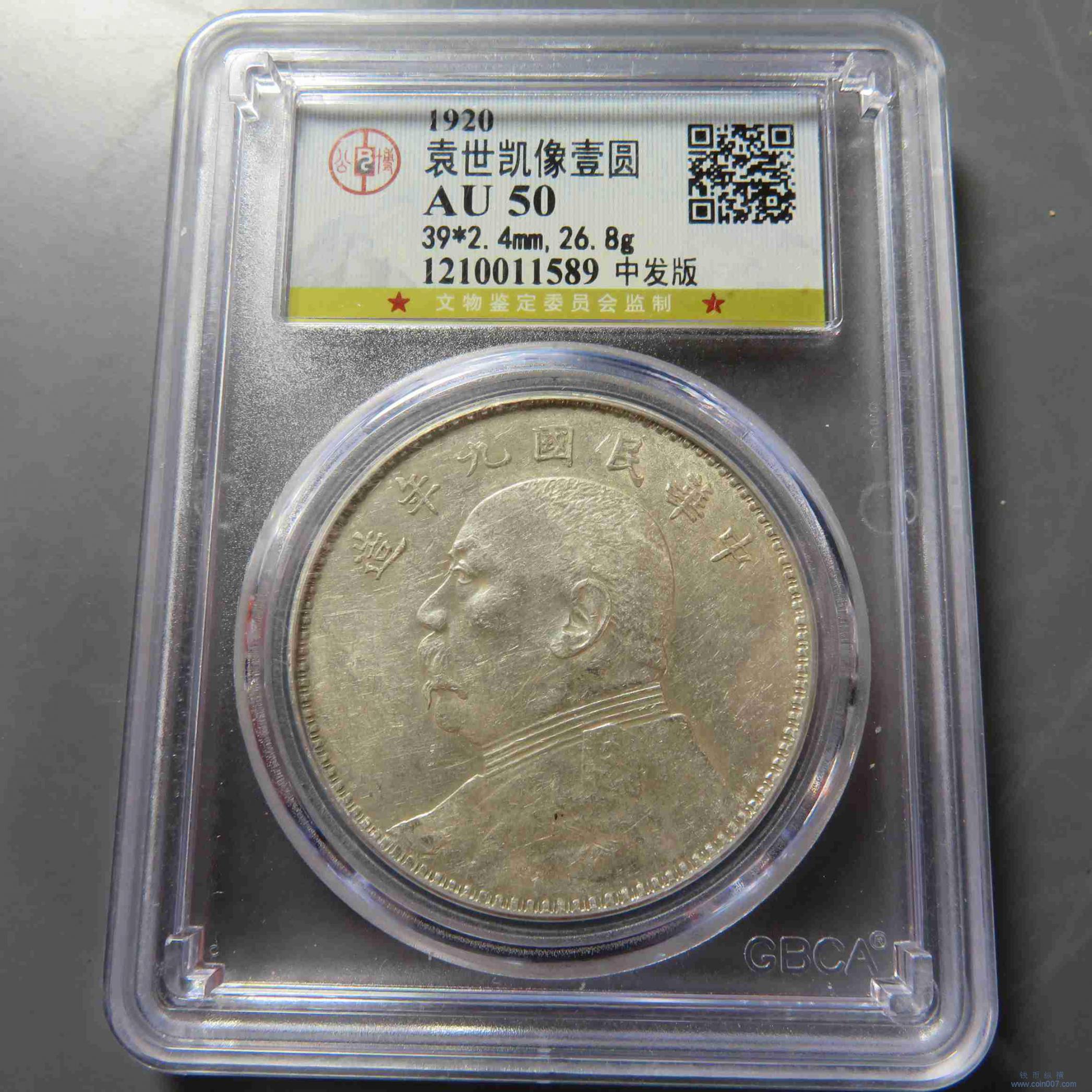 Z0046.袁世凯像九年壹圆 中发版 AU50