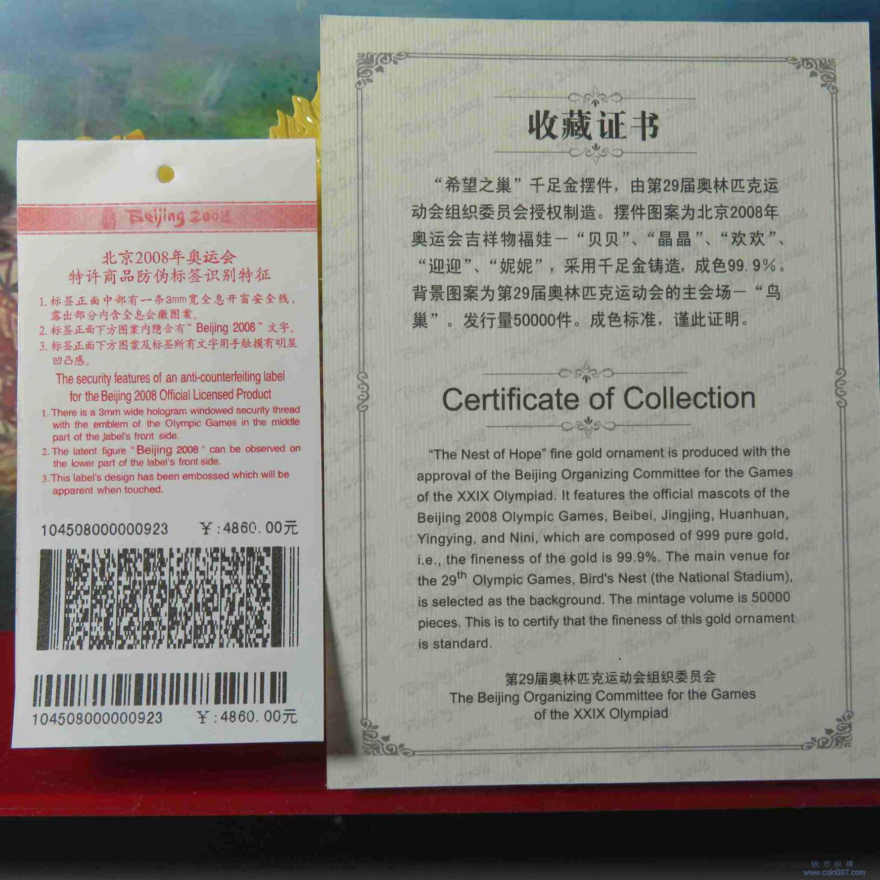 | Z0078.福娃奥运千足金摆件 原盒证书发票 限量版 |