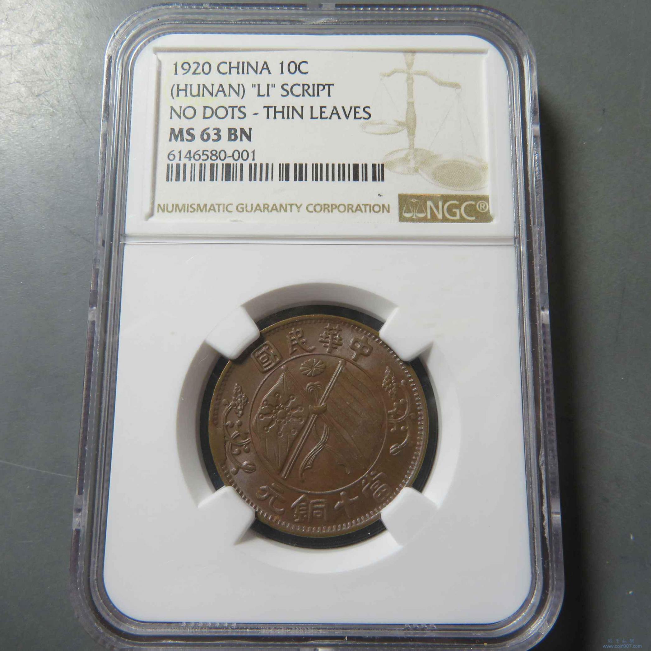 Z0100.湖南双旗十文 NGC MS63BN