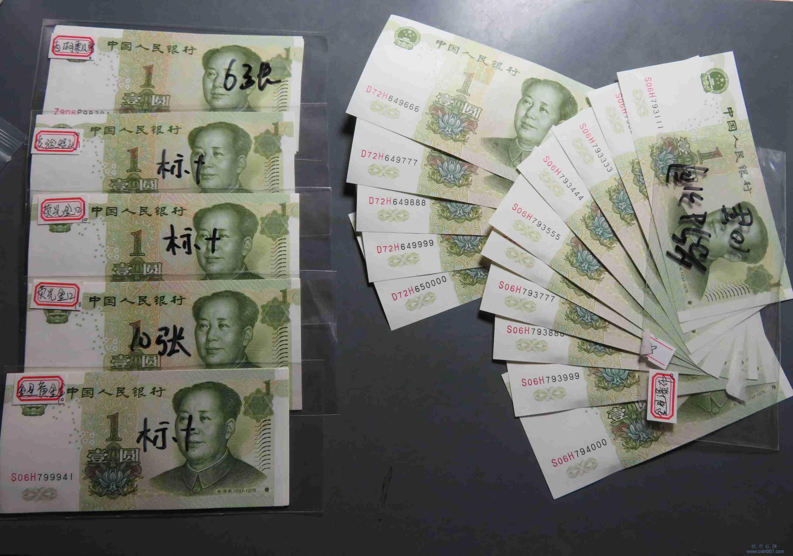 拍品24.五版纸币壹圆豹子号标十等7组 61张