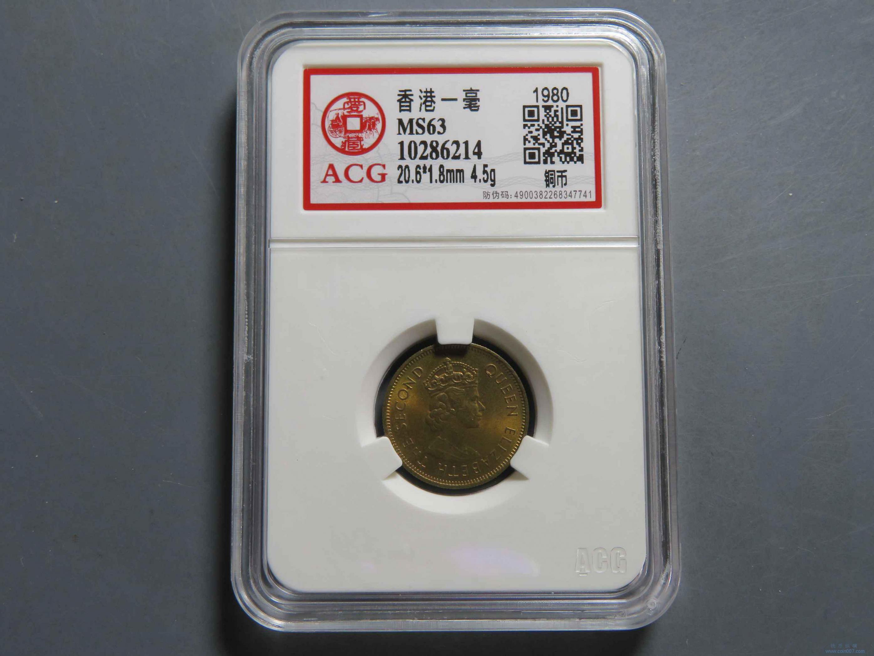 拍品29.1980香港壹毫 MS63