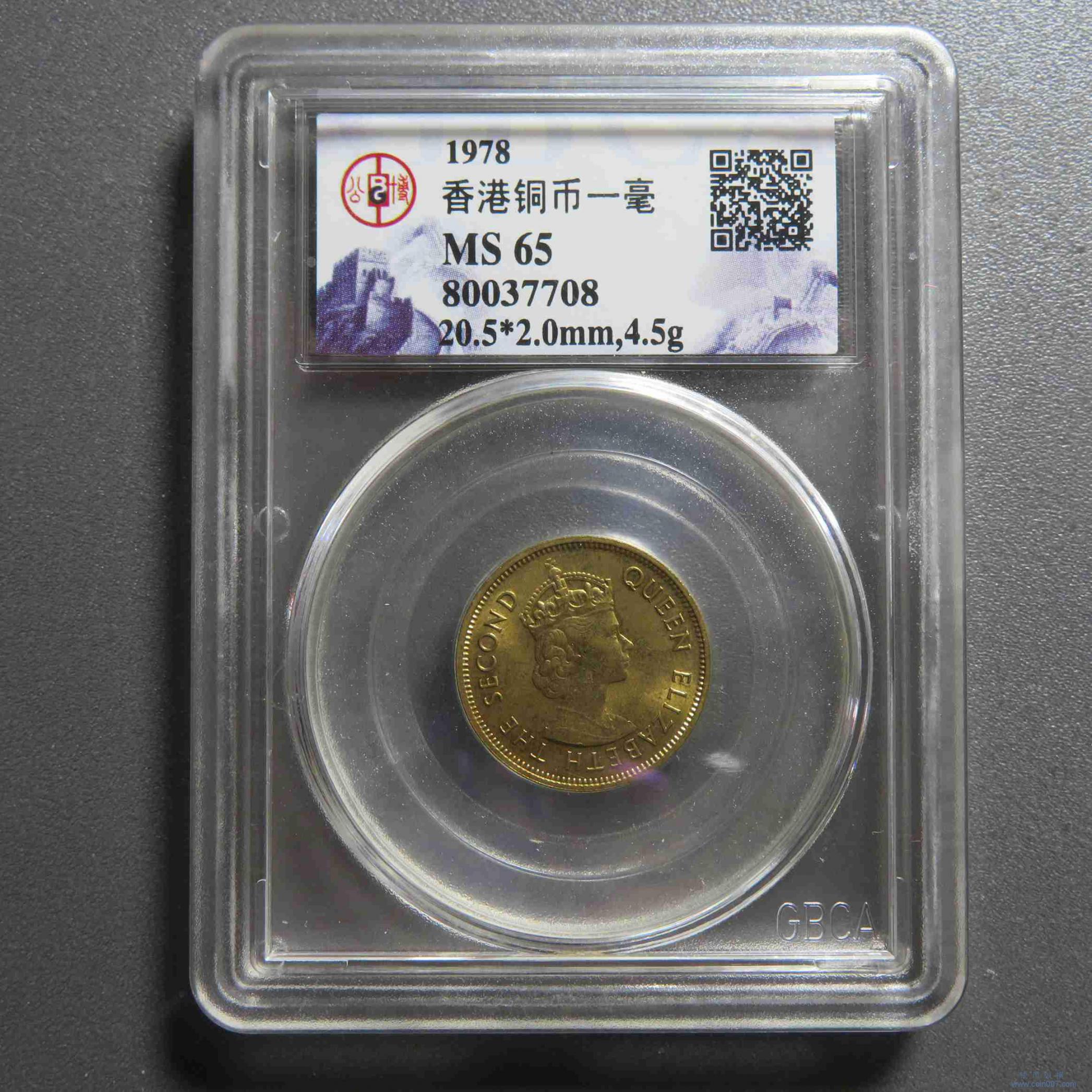 W0740.1978年香港伊丽莎白一毫铜币公博MS65(1)