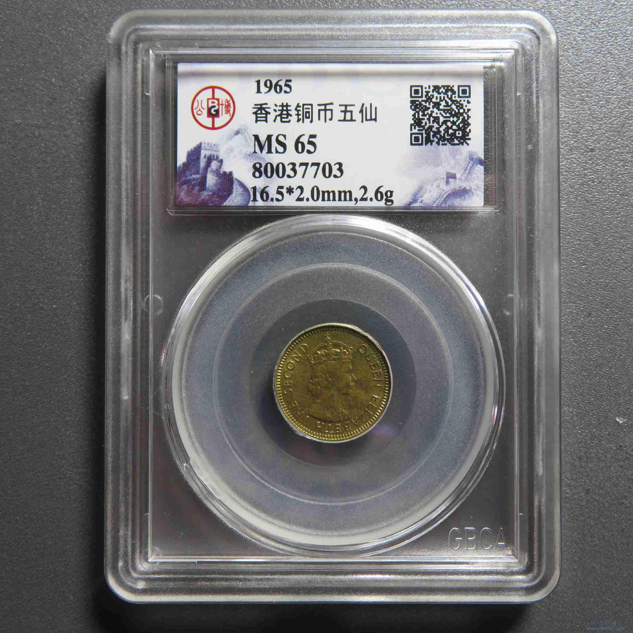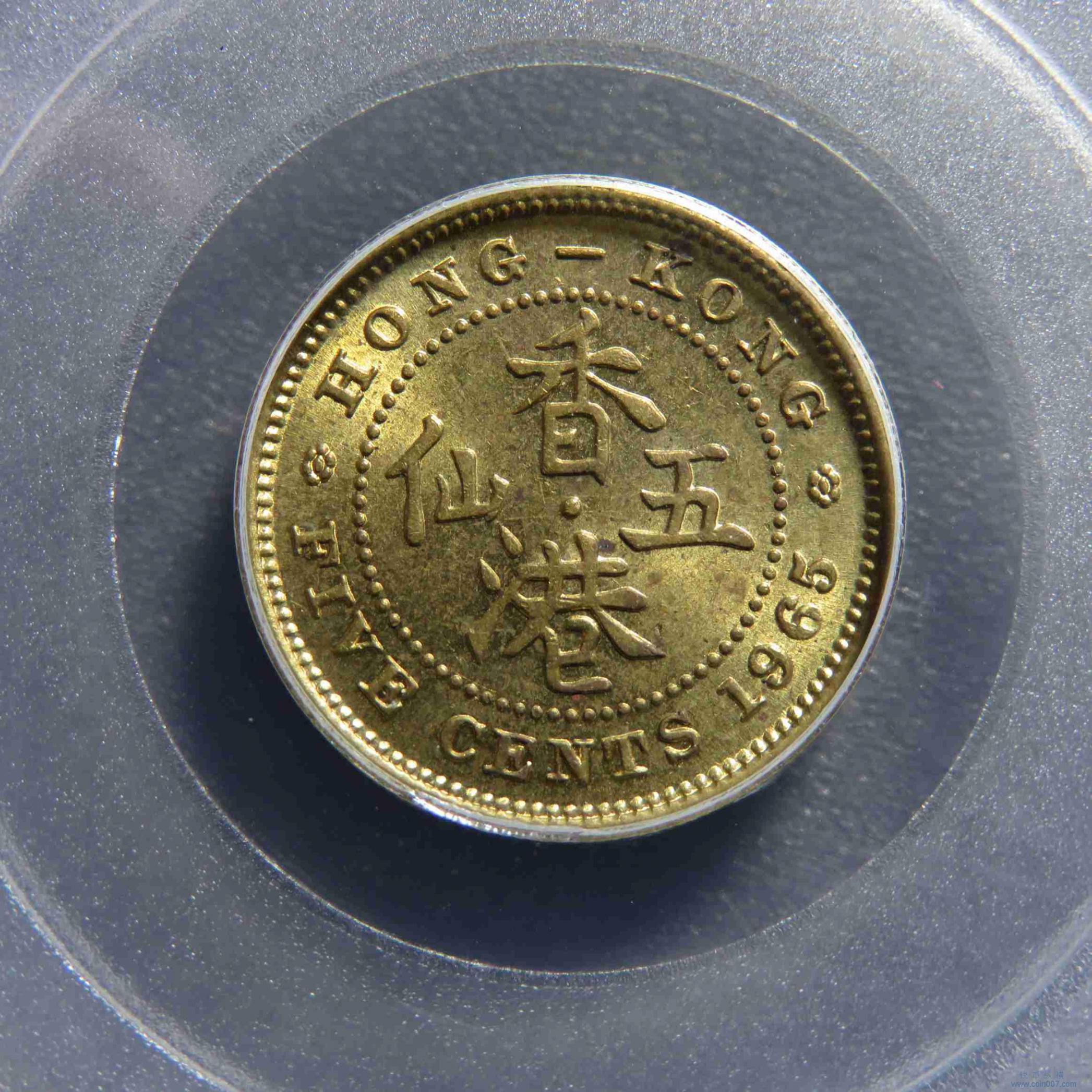 W0742.1965年香港伊丽莎白五仙铜币公博MS65