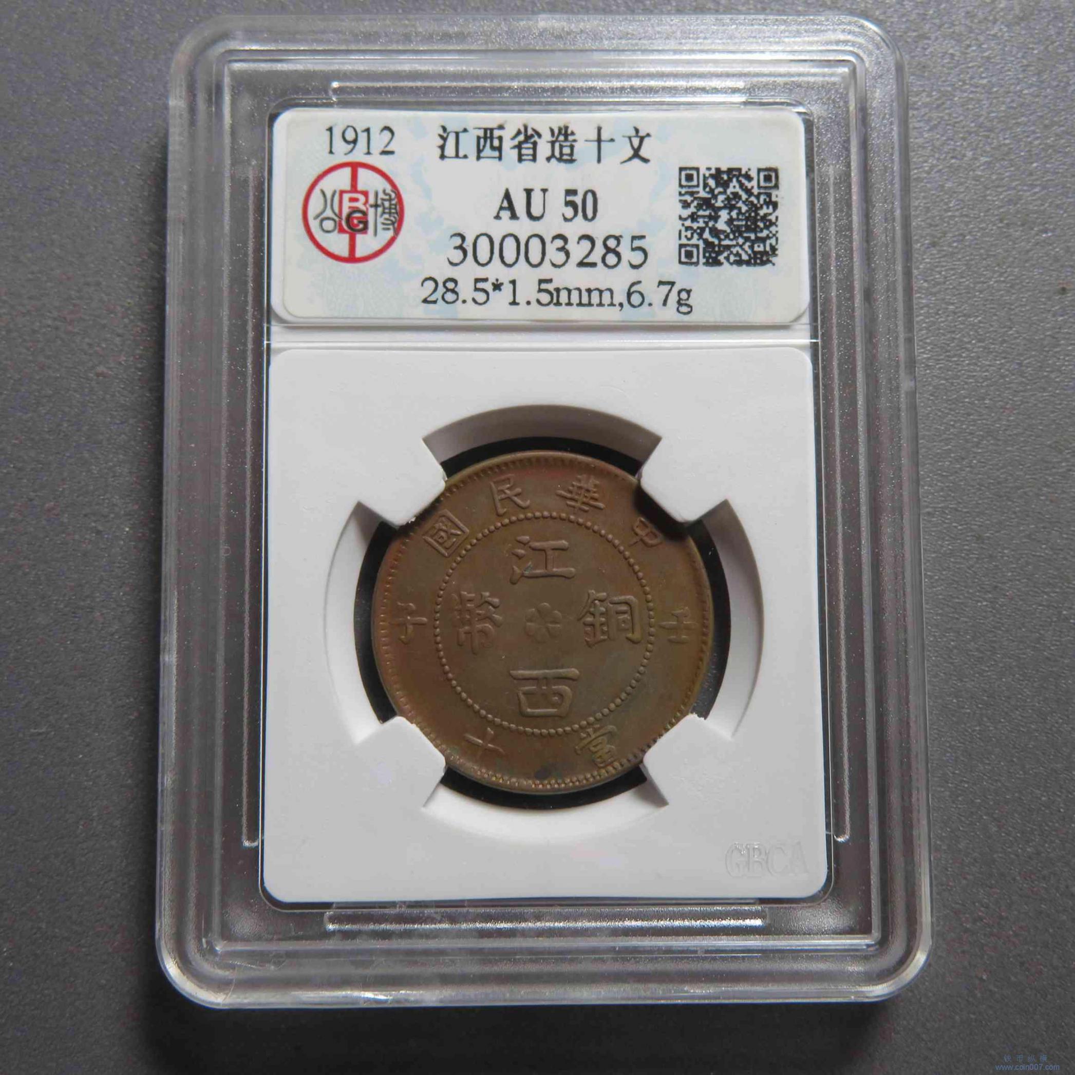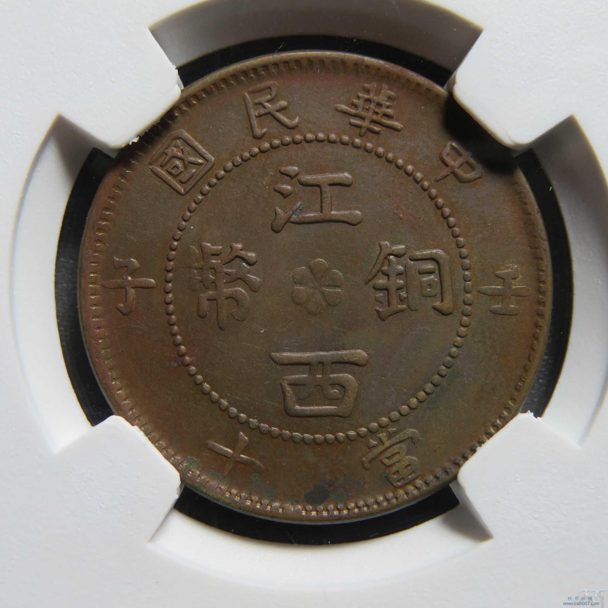 Z0123.中华民国江西铜币壬子当十GB AU50