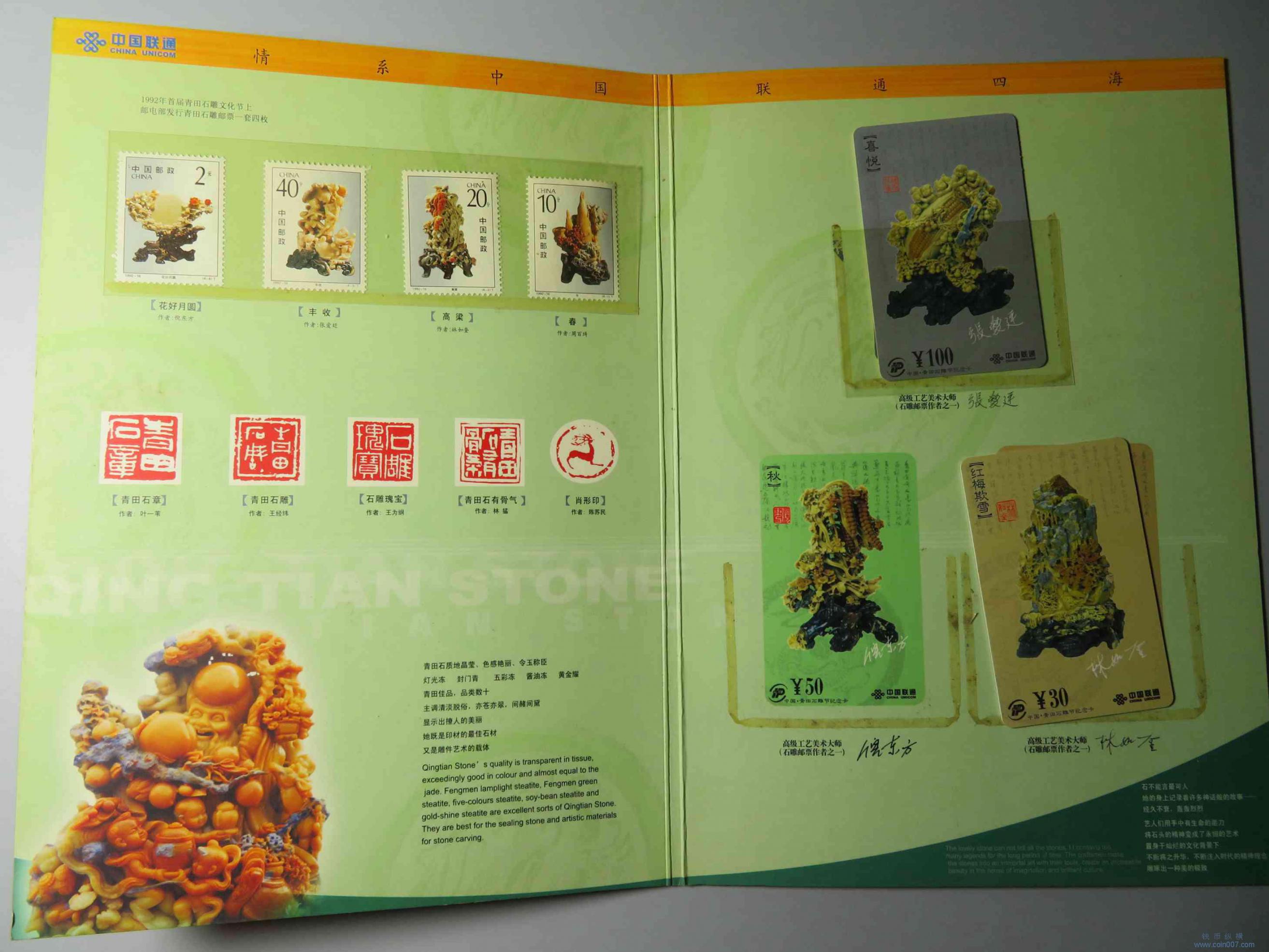 Y0074.2001中国·青田石雕节·中国联通电话卡(面值180元)