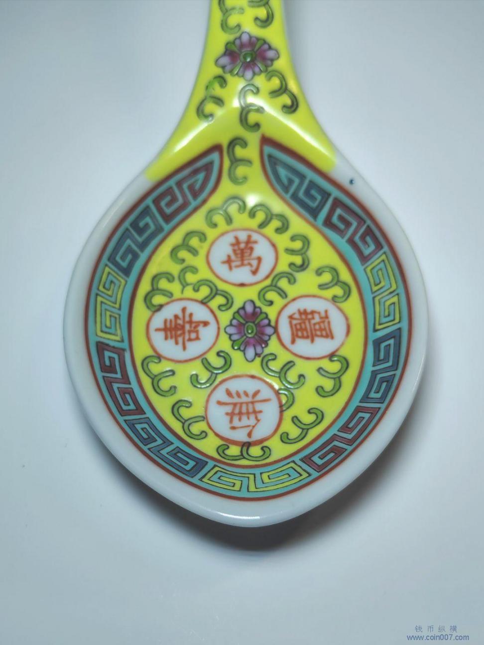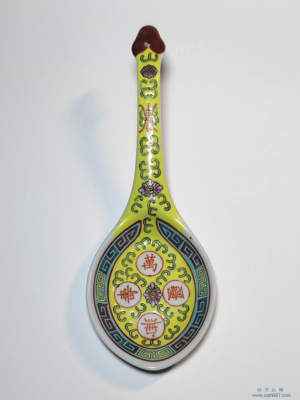 567瓷器 黄地粉彩“万寿无疆”纹汤勺(羹匙)