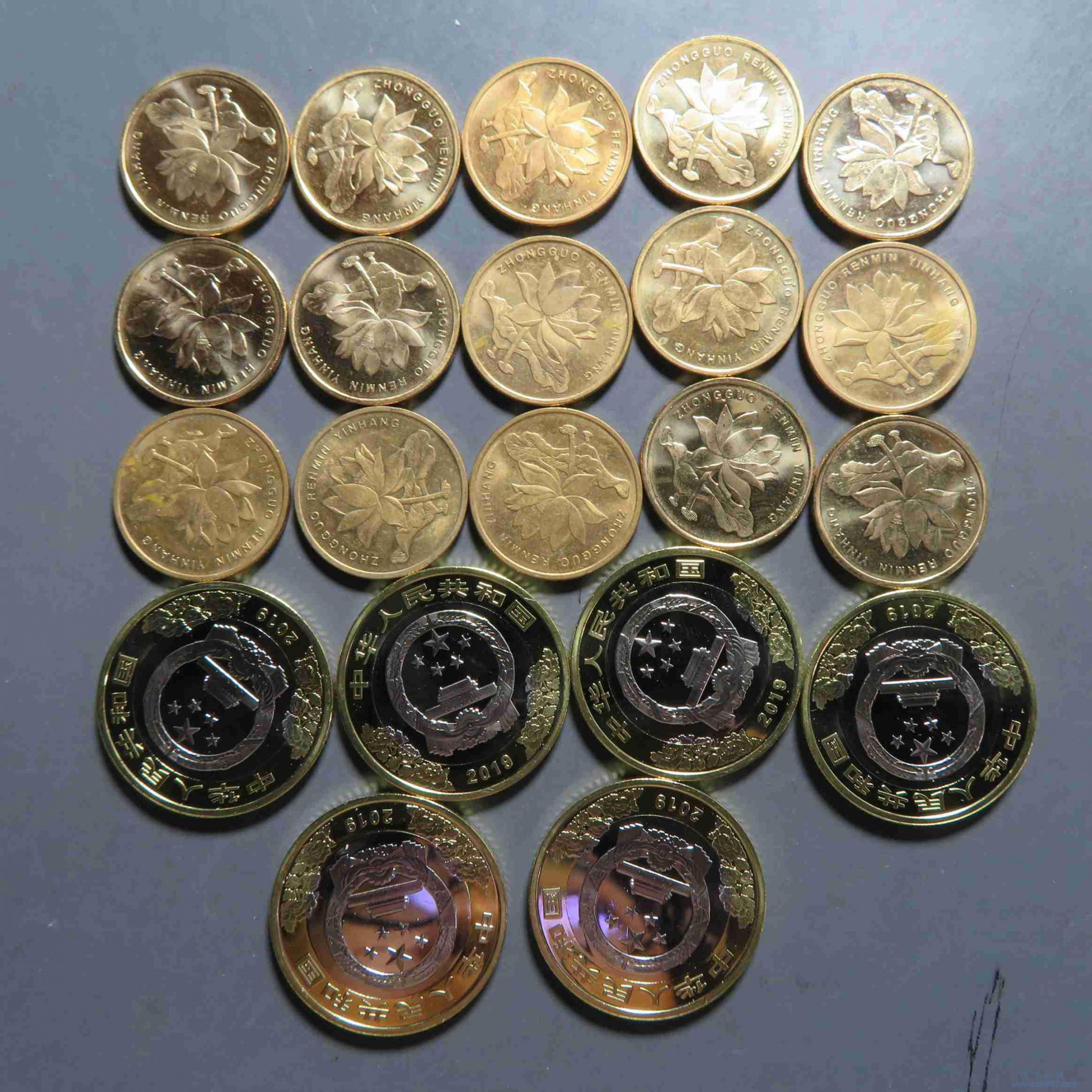 拍品27.各类纪念币建国70 荷花五角等 面值67左右