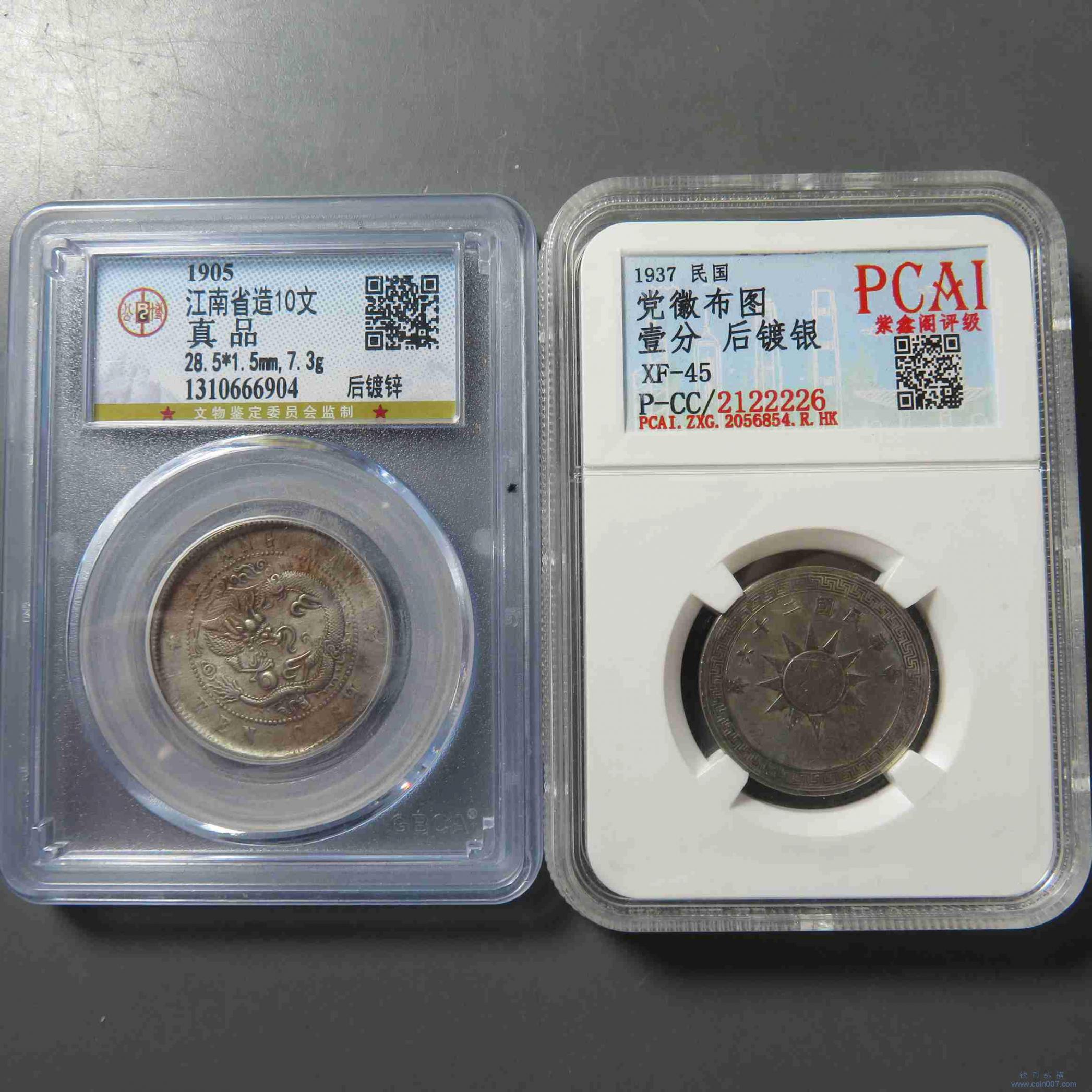 | W0959.江南十文 党徽壹分 镀锌银 2枚 评级币 |