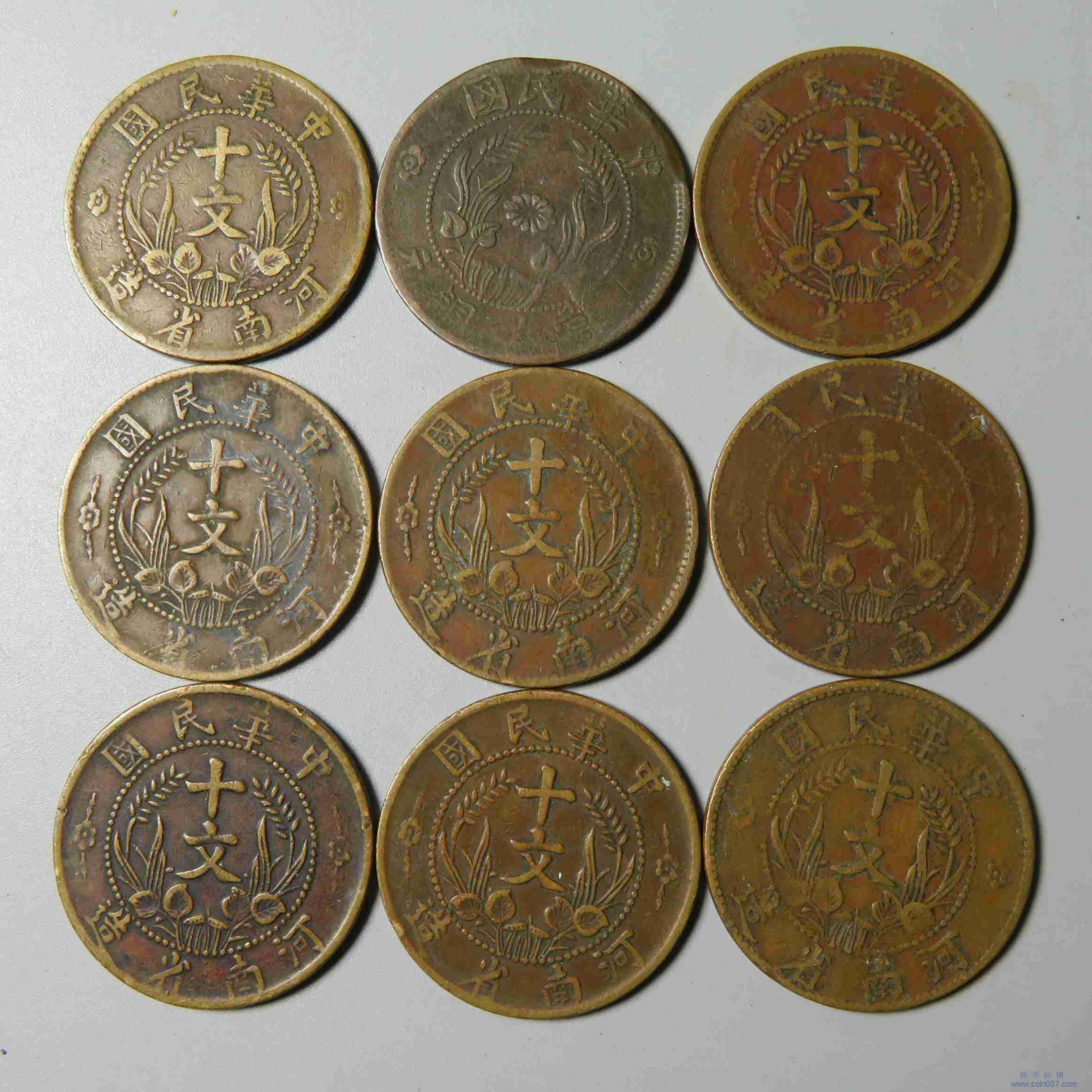 拍品27.河南十文铜元 美品9枚