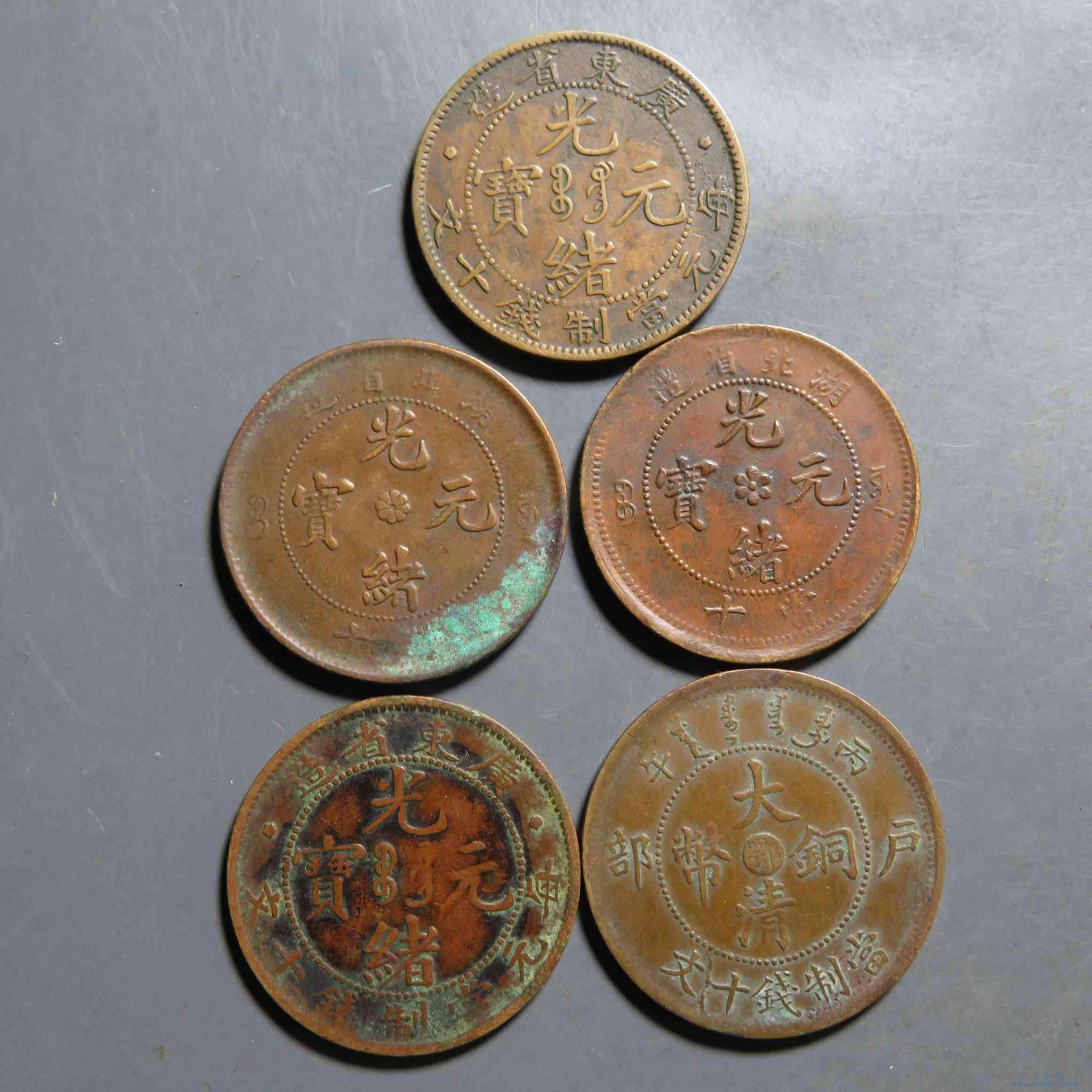 拍品57.各类铜元5枚 广东湖北等