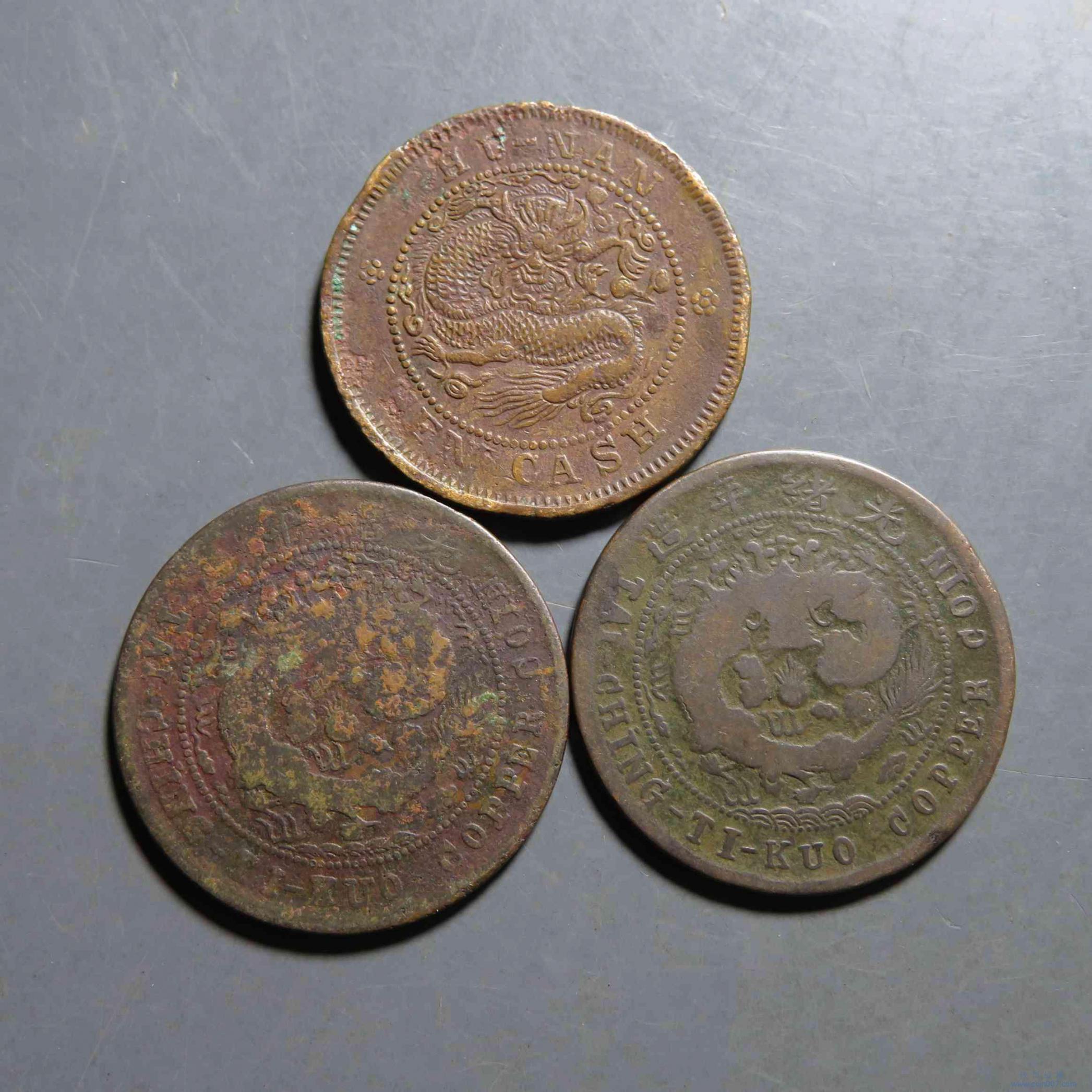 W1017.版别铜元3枚 湖南当十 滇十文