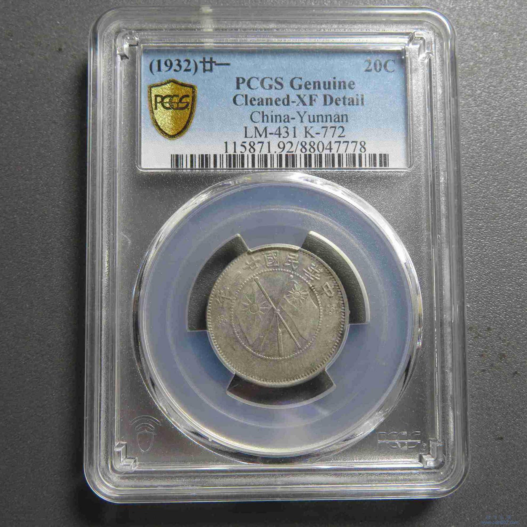 W1276.云南双旗贰角银币 PCGS XF