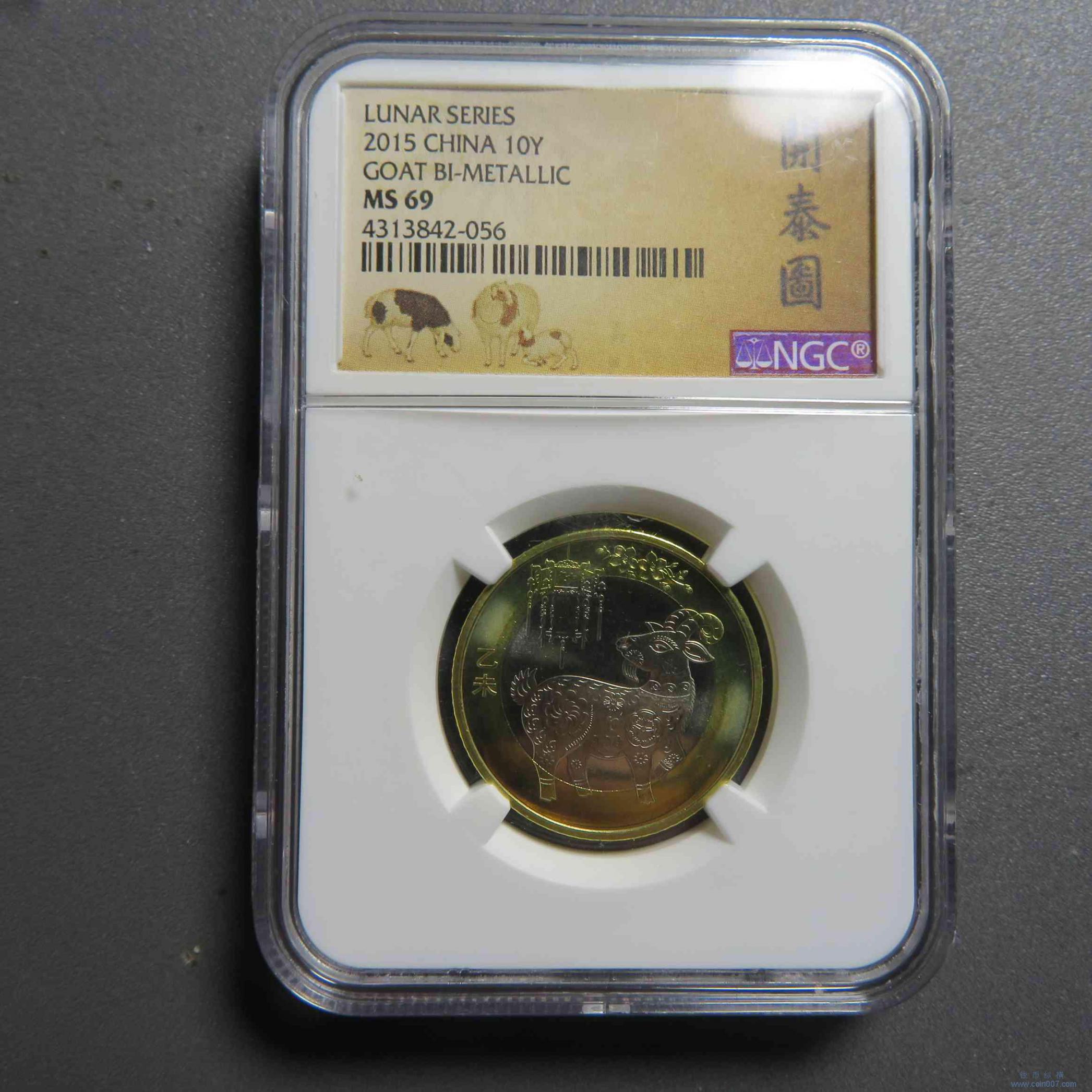 W1320.2015羊年纪念币10元 NGC MS69