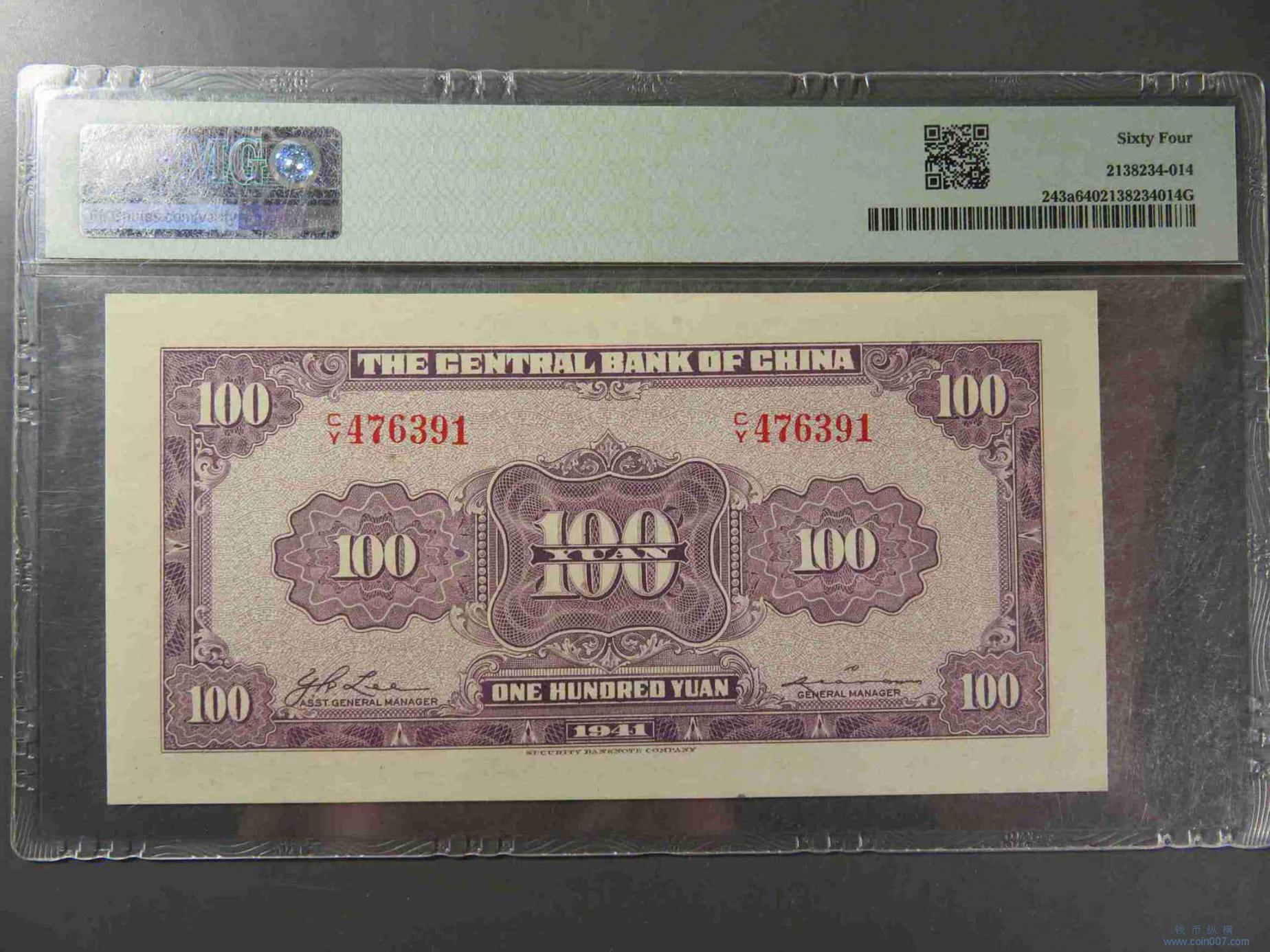 W1350.中央银行壹佰元 PMG 64