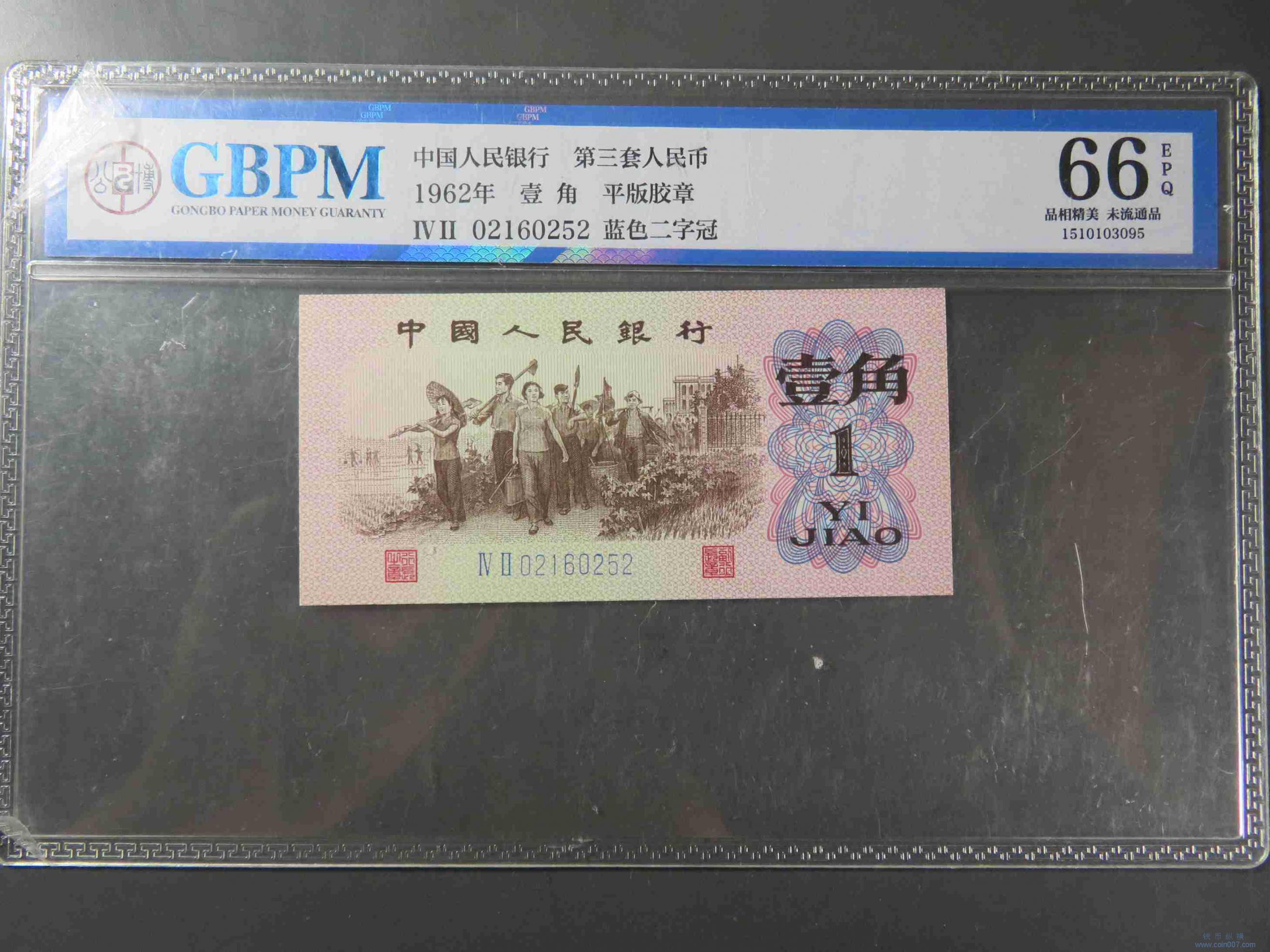 W1351.三版纸币 壹角 蓝色二字冠 EPQ66