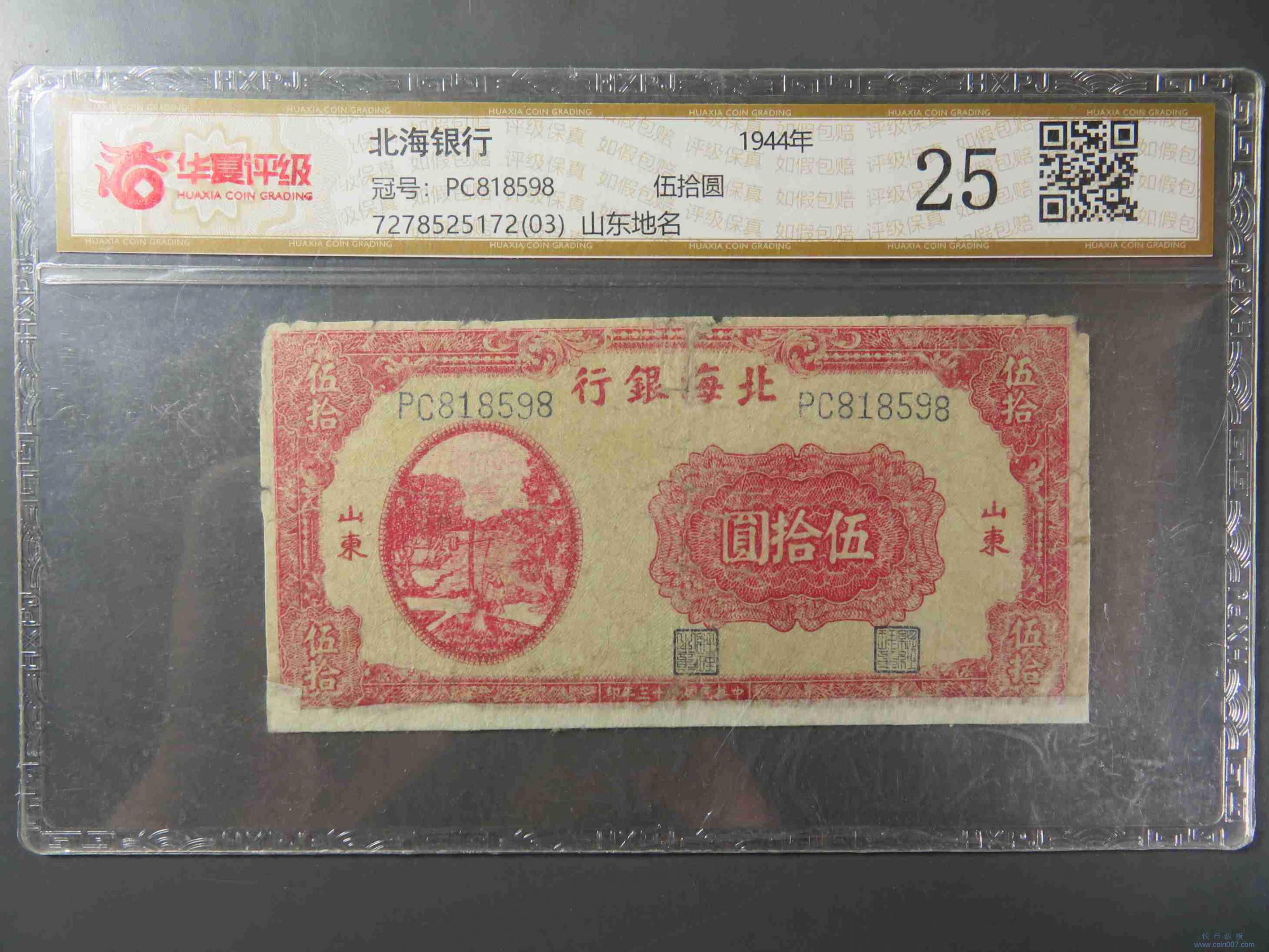 W1371.北海银行伍拾元 评级25