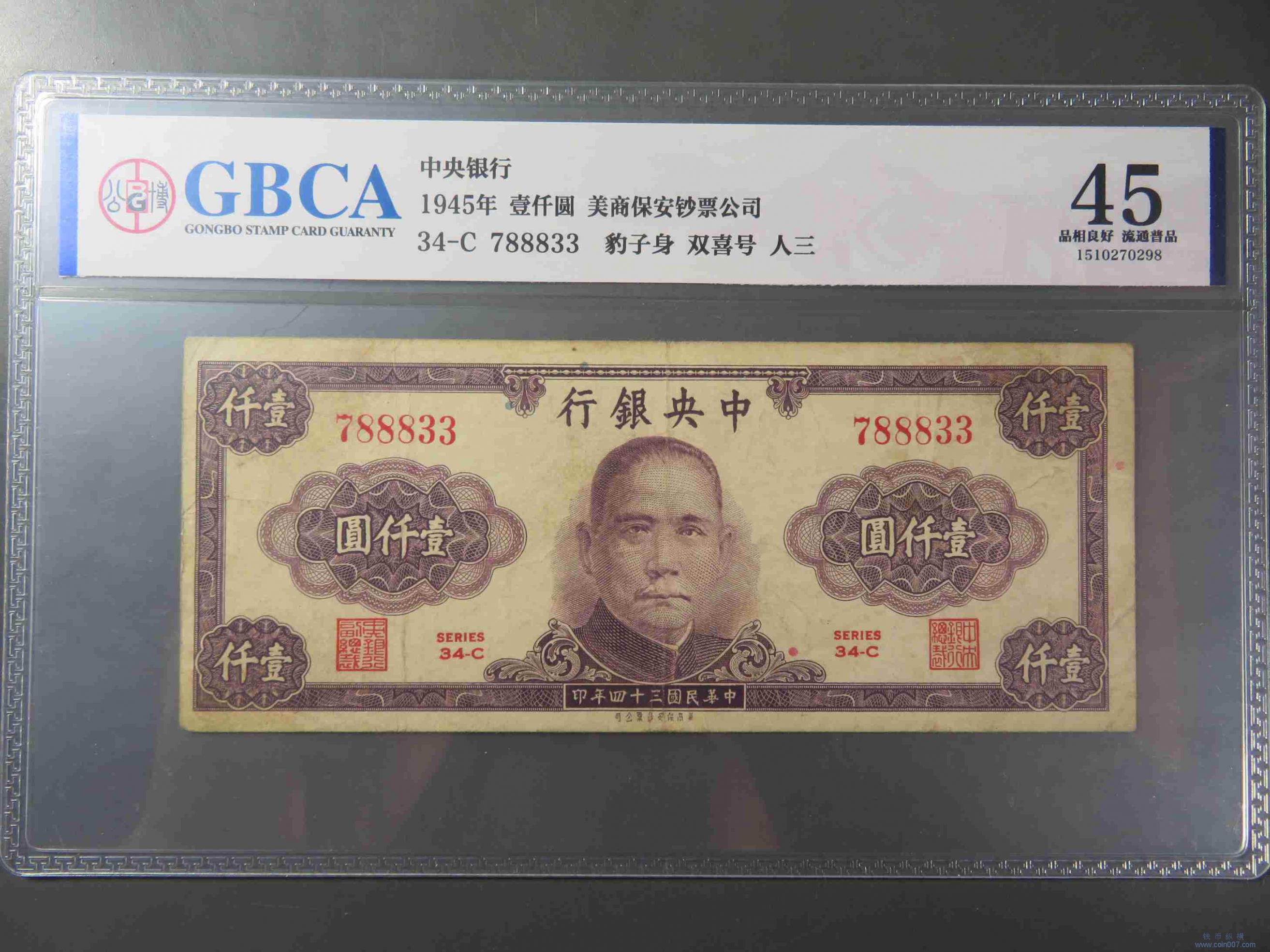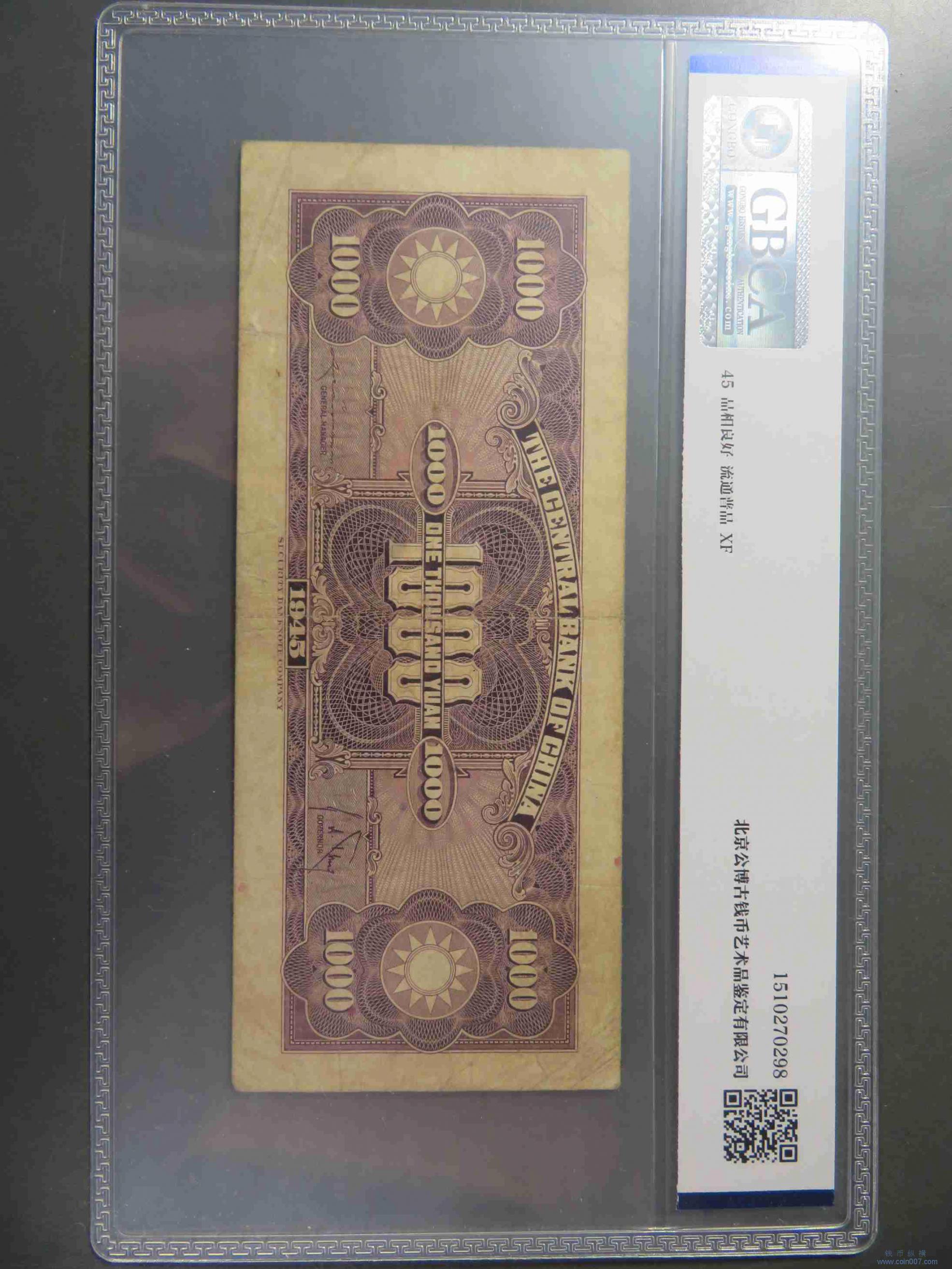 W1379.中央银行壹仟元 评级45