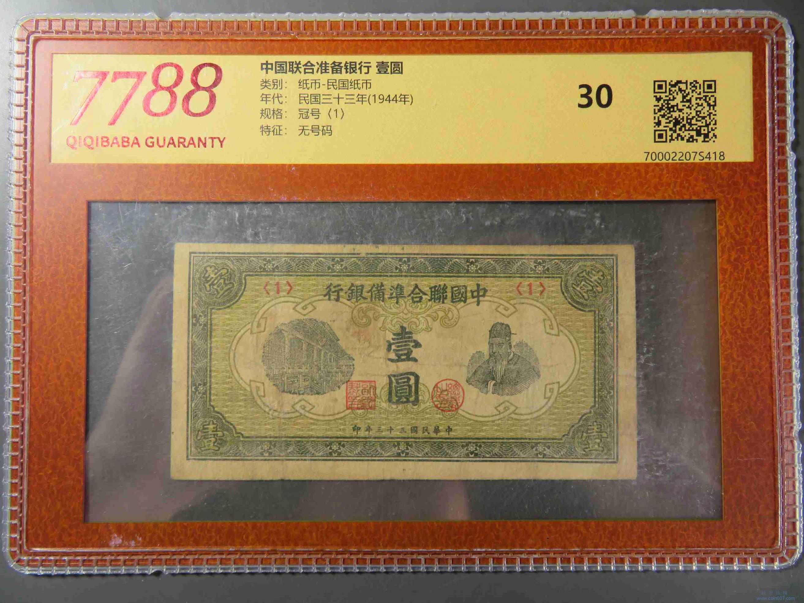 W1389.联准银行壹圆 评级30