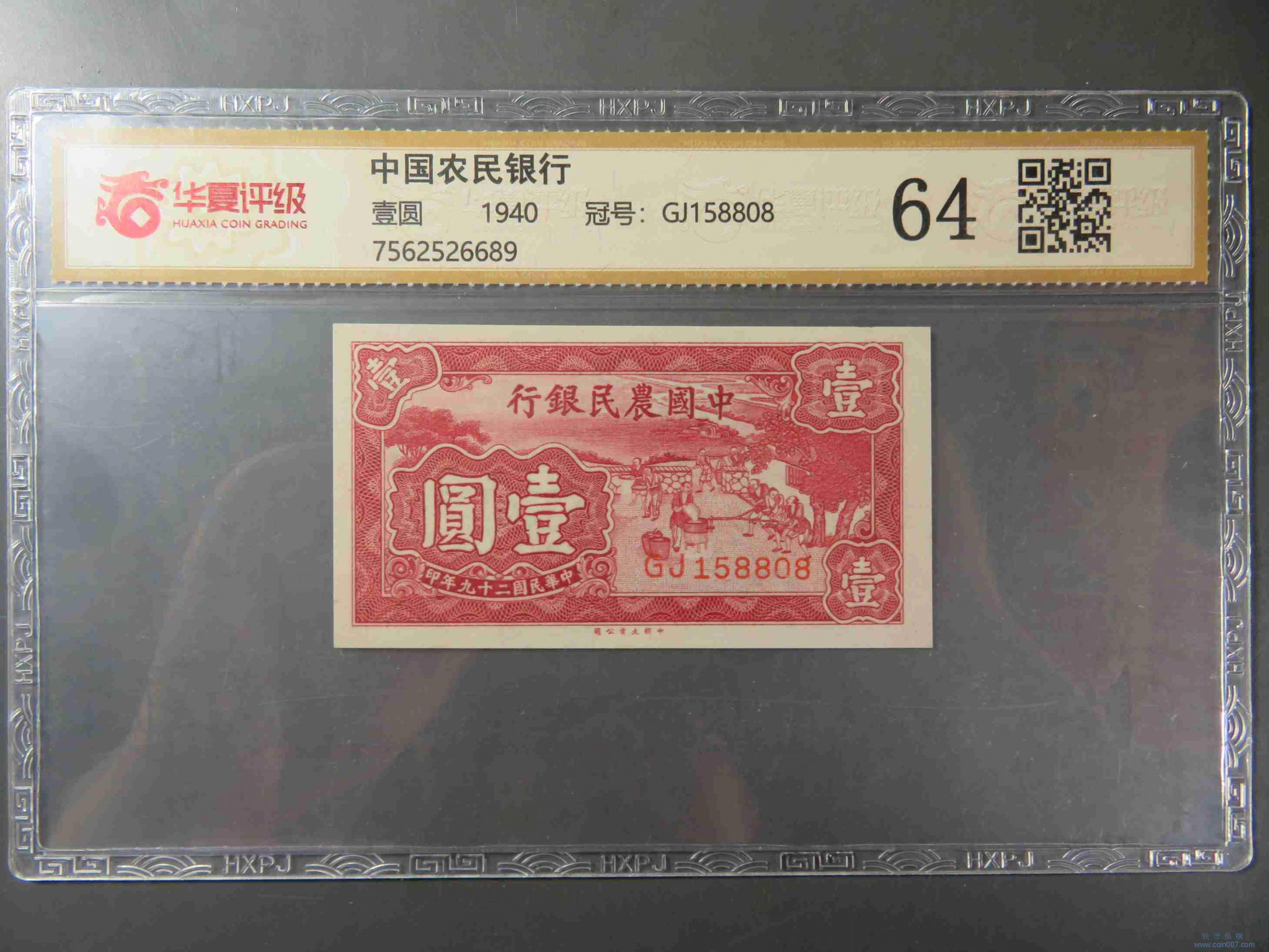 W1393.中国农民银行壹圆 评级464