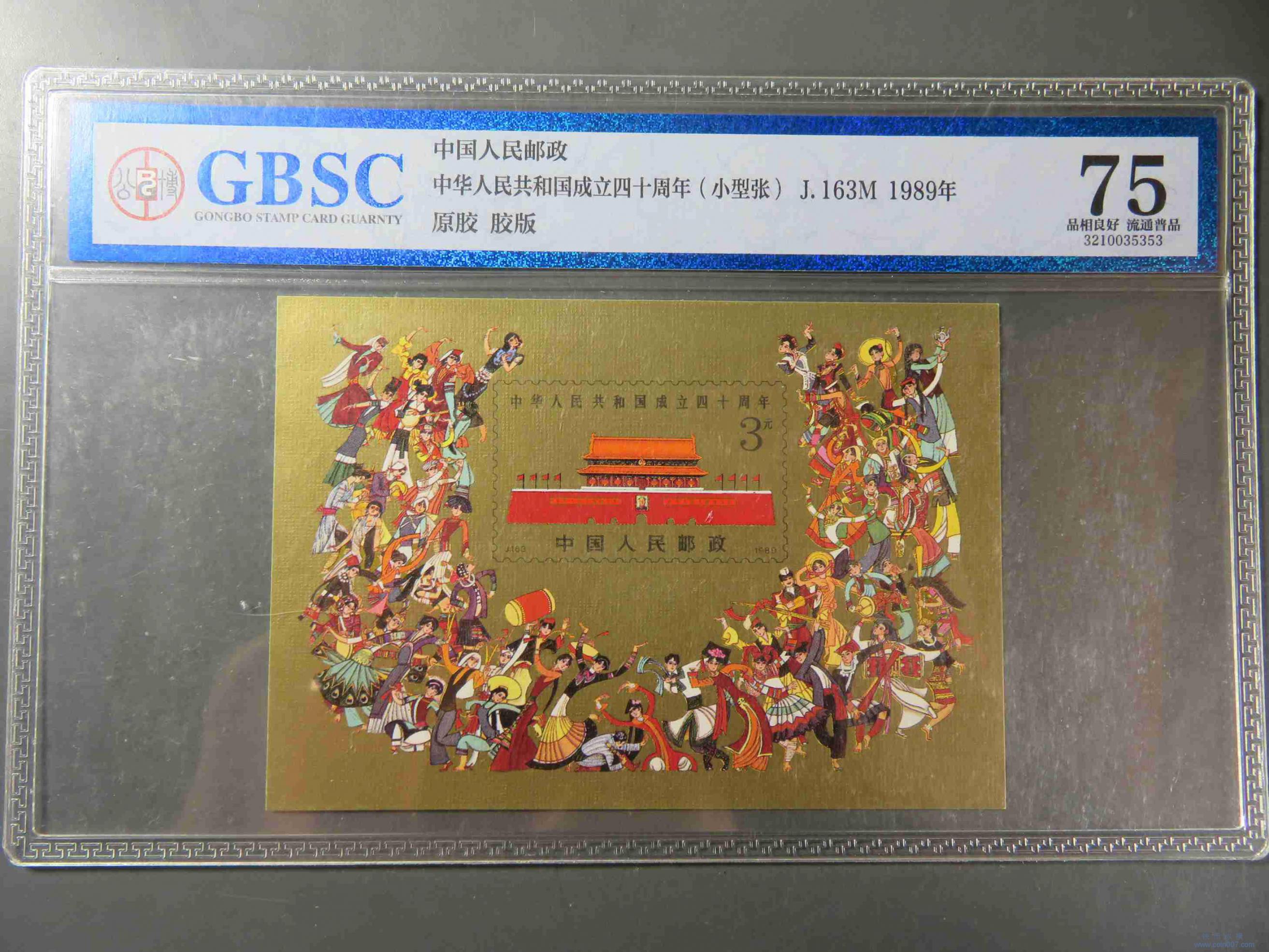 W1397.中国人民邮政 建国40周年小型张 评级75